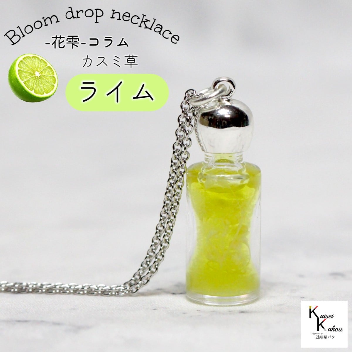 「 Bloom drop necklace 花雫ネックレス コラム ライム」 カスミ草入りクレオパトラストームグラスネックレス ストームグラスネックレス カラーストーム ラッキーカラー 推しカラー 推し活 フィッツロイ お天気管 ボトル