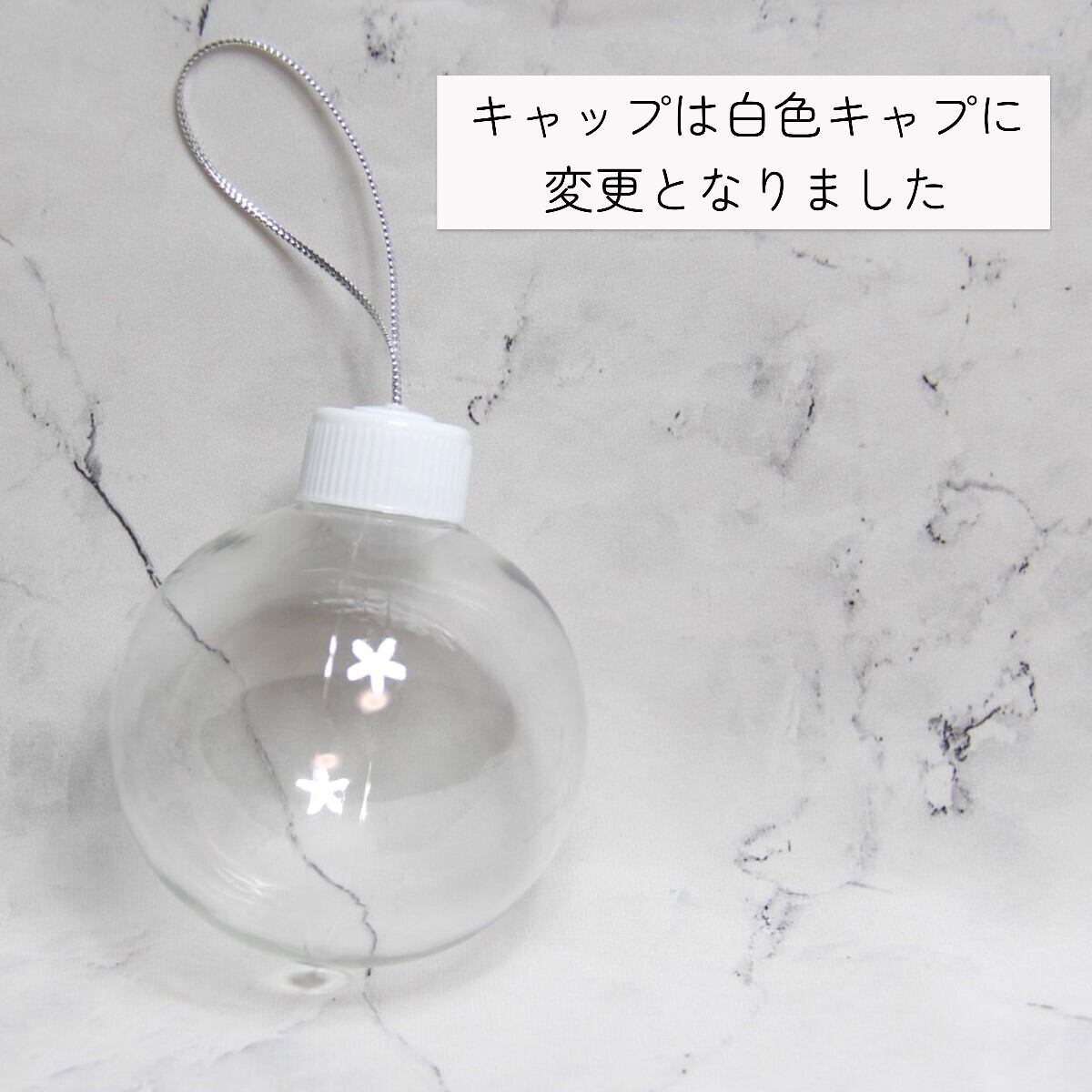 透明なボール型のオーナメント!ツリーをデコレーションしたり、他とは違う飾り付けを演出するのにぴったりなアイテムです。※プラスチック製のため、大変傷付きやすいです。お取り扱いに十分注意してください。※キャップや紐の種類及び色は写真と異なることがございます。※キャップの色の選択はできません。※密栓することが可能で、液体も入れることができますが、アルコール類やシンナー類を入れることはおやめください。※スタンドは付属しません。スタンドご希望の方はオプション項目よりスタンドありをお選びください。