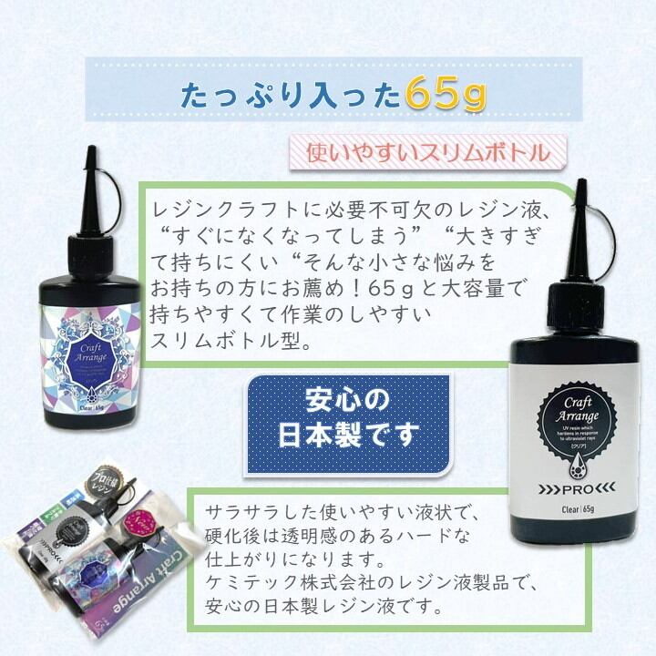 「クラフトアレンジ UVレジン液 65g 3本」 スリムボトル アクセサリー レジン液 レジン 大容量 スリムボトル 保存に便利 ハンドメイド デコレーション コーディング ハンドメイド クラフトアレンジUVレジン液 大容量 レジン液 65g スリムボトル ケミテック