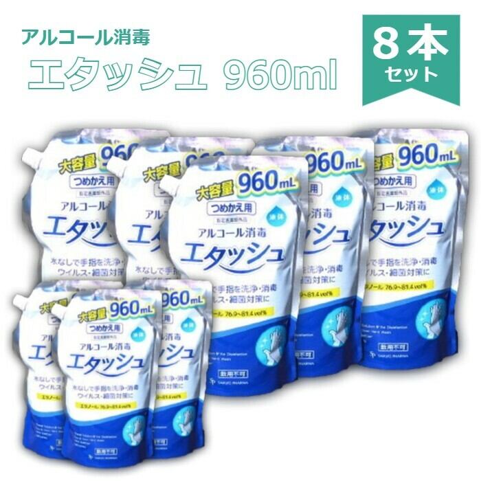 「エタッシュ 詰め替え 960ml 8本」 ウイルス ウィルス 細菌 洗浄 消毒 速乾性 外皮 指定医薬部外品 詰替え 詰め換え 消毒用エタノール サイキョウファーマ