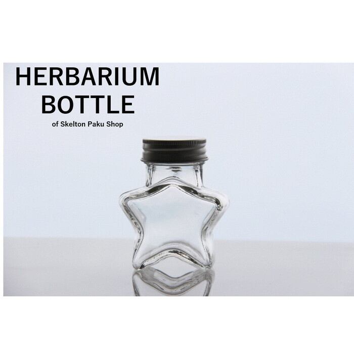 ハーバリウムによく使われる透明瓶。横から見ると星の形がとてもキュートです。もちろんハーバリウム以外にもお使いいただけます。口径:約3cm高さ:約7.5cm容量:約80mlキャップ:シルバー※本製品はソーダガラスのため、ガラス面に独特の波模様がございます。※アルミキャップは小傷等があることがございます。※海外輸入品のため、小傷、汚れがあっても良品とさせていただいております。※アルミキャップは傷つきやすいため、返品交換は受け付けておりません。※ハート形、星型どちらかをお選びいただけます。