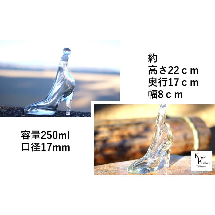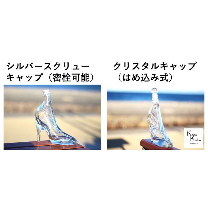 素材:ガラスシンデレラシューズ型のガラスボトル!卓上や玄関先等のディスプレイにも丁度いい手ごろなサイズ感です♪シルバーキャップとクリスタルキャップが付属します。シルバーキャップは密栓可能です。輸送時や横倒しになる場合はシルバーキャップをお使いください。クリスタルキャップは上から栓をするだけで密閉性はありません。※ご注意※※海外製につき、小傷や気泡、シワなどがございます。※キャップを閉めるときは、内圧を抜きながらお閉め下さい。※キャップは小傷等があることがございます。※アルミキャップは傷つきやすいため、返品交換は受け付けておりません。