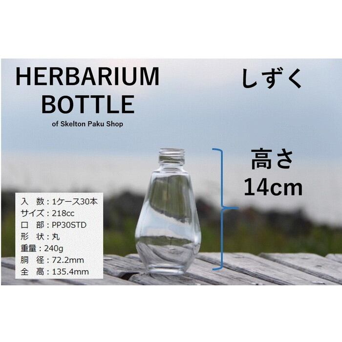 ハーバリウム用だけでなく、ドライフラワーやプリザーブドフラワーを入れて楽しむことも可能です!食品適合商品ですので、調味料入れや、ドレッシングを入れる容器にもお使いいただけます。弊社では様々なタイプ・大きさがあるので透明ガラス瓶をご用意しております。どうぞお買い物をお楽しみください。※本商品はボトルとキャップセットの販売です。花材等はつきません。※本商品はソーダガラスのため独特の波模様がございます。※環境への配慮から梱包資材にはリサイクル品を用いますので、あらかじめご了承ください。