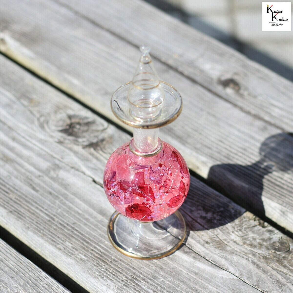 エジプト香水瓶に閉じ込められたハーバリウム(植物標本)です。高さ20±2cm(球体は高さ13±2cm)冬の雪や霜のときには、凛とした姿を。夏のとても天気がよい日には涼みを与えてくれます。注意事項○1つ1つガラスから手作りしております。○細かな装飾や模様が写真と異なります。○カラーのみお選びいただけます。○ボトルの形状、花材はお選びいただけません。ランダムとなります。〇火器の近くに置かないでください。小児の手の届かないところに保管し、誤飲しないようにお願いします。割れてしまい、手などについた場合には、オイルを紙などでふき取り、水でよく洗ってください。〇希望の色を選択いただきましても写真と異なることがございます。