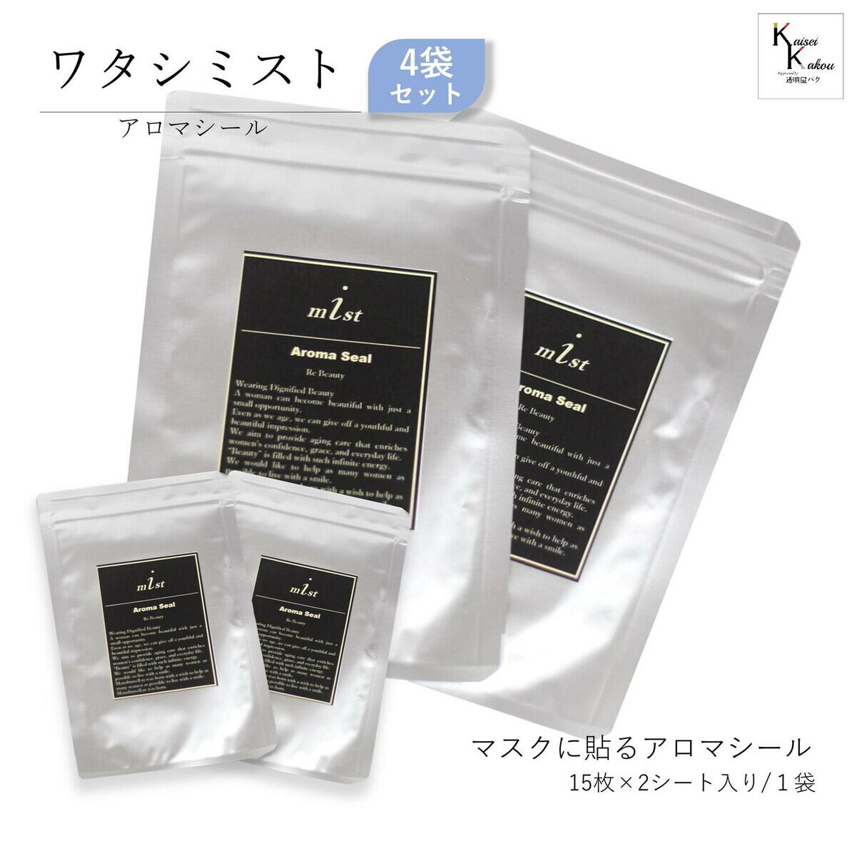 ワタシミスト「アロマシール」マスクに貼るアロマシール 15枚×2シート入り4袋セット