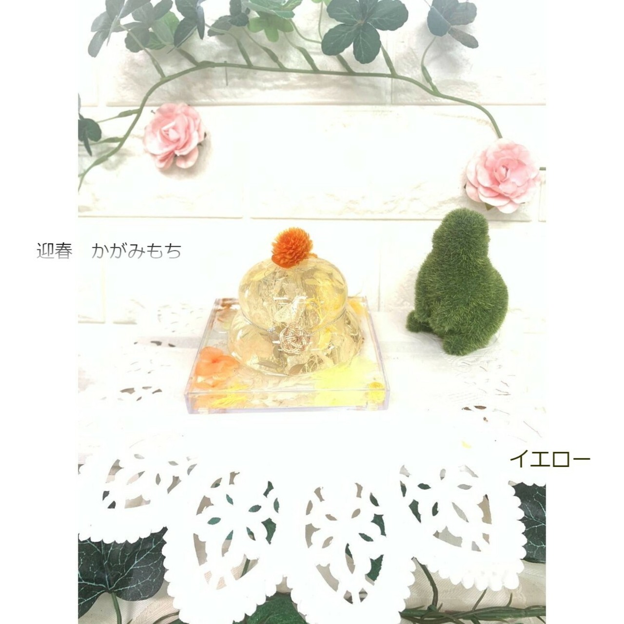 ハーバリウム鏡餅かがみもちりうむ鏡餅の中を優雅に舞うお花の華やかさとガラスのような透明感が特徴です。新年を迎える素敵なインテリアアイテムとしてお土産やご自宅用に。本体サイズ約8×約8×高さ約5.5cmカラーレッドグリーンイエローブルーホワイト×シルバー台座クリア半月盆ゴールド半月盆ブラック上記の色5色、台座3パターンの計15種類をご用意しております。タイトルの「」内の組み合わせと写真をそれぞれ組み合わせて、ご参照ください。《素材》本体:固まるハーバリウム(スーパーボールのような弾力性のあるシリコン)花材(ドライ又はプリザーブドフラワー)土台:アクリル又はお盆