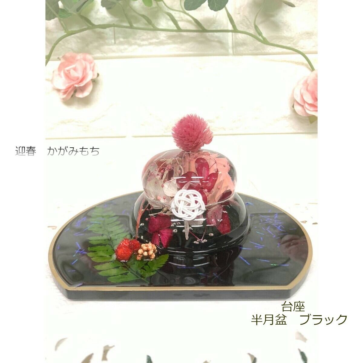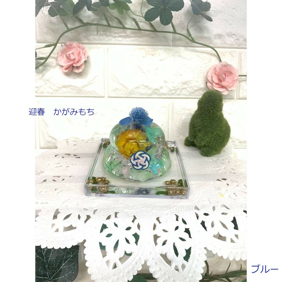 ハーバリウム鏡餅かがみもちりうむ鏡餅の中を優雅に舞うお花の華やかさとガラスのような透明感が特徴です。新年を迎える素敵なインテリアアイテムとしてお土産やご自宅用に。本体サイズ約8×約8×高さ約5.5cmカラーレッドグリーンイエローブルーホワイト×シルバー台座クリア半月盆ゴールド半月盆ブラック上記の色5色、台座3パターンの計15種類をご用意しております。タイトルの「」内の組み合わせと写真をそれぞれ組み合わせて、ご参照ください。《素材》本体:固まるハーバリウム(スーパーボールのような弾力性のあるシリコン)花材(ドライ又はプリザーブドフラワー)土台:アクリル又はお盆