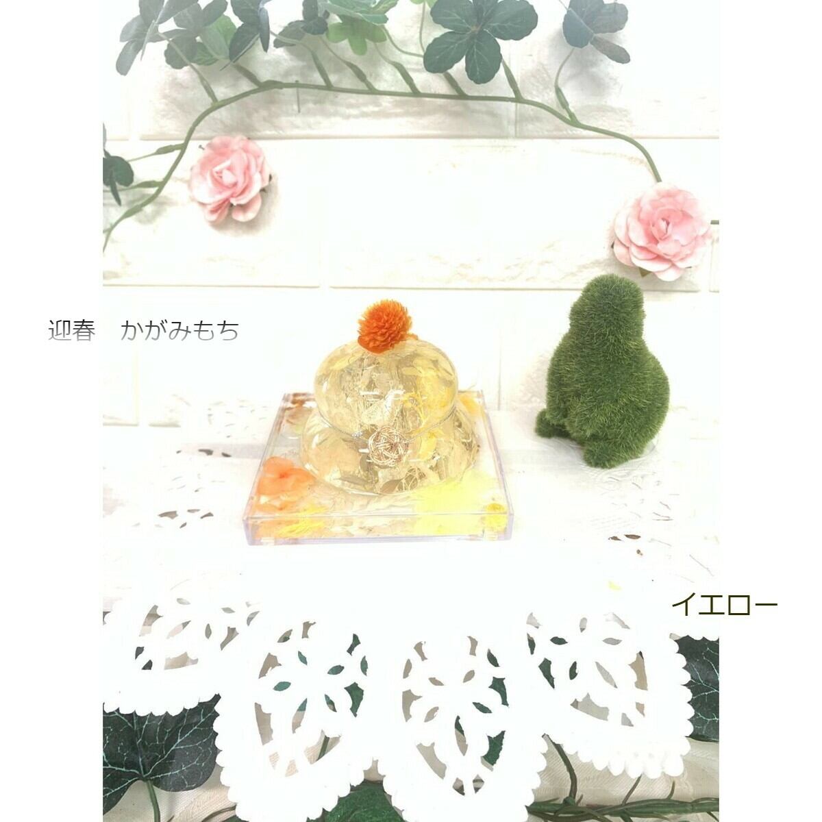 かがみもちりうむ 「色イエロー×台座クリア」ハーバリウム 鏡餅 正月飾り かがみもち ハーバリウム鏡餅 新年 しめ縄 しめ縄リース ハンドメイド ハンドメイド雑貨 ドライフラワー プリザーブドフラワー お正月
