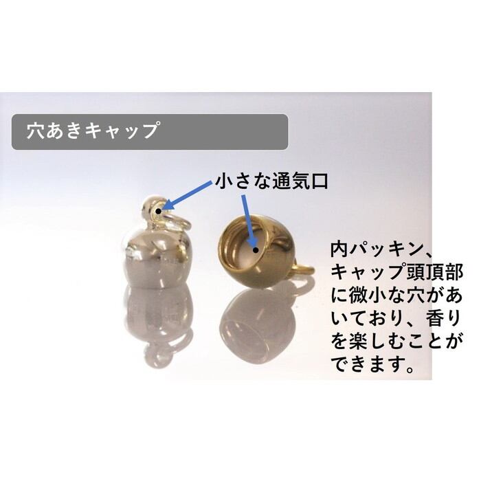 アクセサリーをおつくりする方におすすめのペンダントタイプの香水瓶です。香水やアロマオイルなどの液体を入れることも可能です。キャップの内側には密閉用の白いパッキンがついています。キャップをしっかり締めてご使用ください。こちらのキャップは穴ありと穴なしタイプがございます。キャップ:シルバーorゴールド※本商品はボトルのみの販売です。中身はつきません。※本商品はソーダガラスのため独特の波模様がございます。※液体を入れる場合はしっかりとキャップをお締めいただき、お客様の責任の下ご使用ください。※環境への配慮から梱包資材にはリサイクル品を用いますので、あらかじめご了承ください。サイズ:3.3cm×4.2cm 3ml