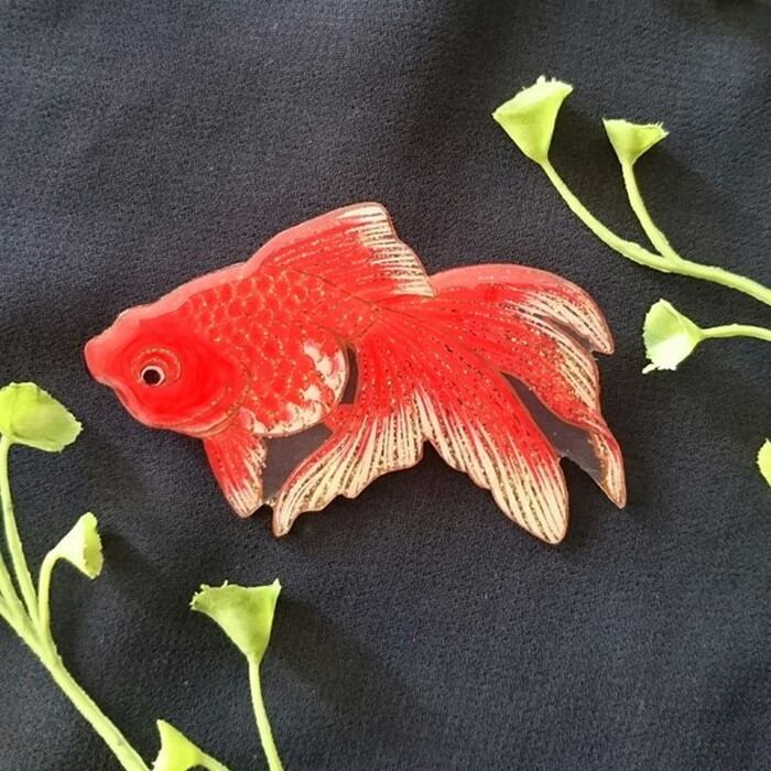 帯留め ブローチ 琉金 キンギョ 金魚 リュウキン 帯飾り 浴衣 夏祭り 帯締め 飾り紐 帯飾り レディース