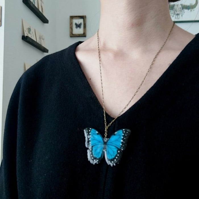 当ページをご覧いただきありがとうございます。弊社では、透明標本およびストームグラス、エジプトガラスなどを販売しております。古い洋館に飾ってあるような蝶の標本をイメージしてアンティークな色合いに仕上げた大きめ蝶のネックレスです。実際にいる世界の蝶たちをプラバンにひとつひとつ手描きで制作しました。印刷では出すことのできない色合いとディティールにこだわりました。表面はレジンでツヤツヤ、透明なプラバンを使用しているので裏も同じ絵柄です。透明標本では、こんな透明標本があったらいいな、可愛がっていたペットを手元に置いておきたいなど、オーダーメイドの要望も承っております。古くなった透明標本のグリセリンの交換など、アフターサービスも承ります。ストームグラスでは必要な量に応じて内用液を調整させて頂き、お得な価格でご提供させていただきます。オーダー受け付けます。こんな標本作ってほしい、可愛がっていたペットを永遠に手元にどうぞ、お気軽にご相談ください。