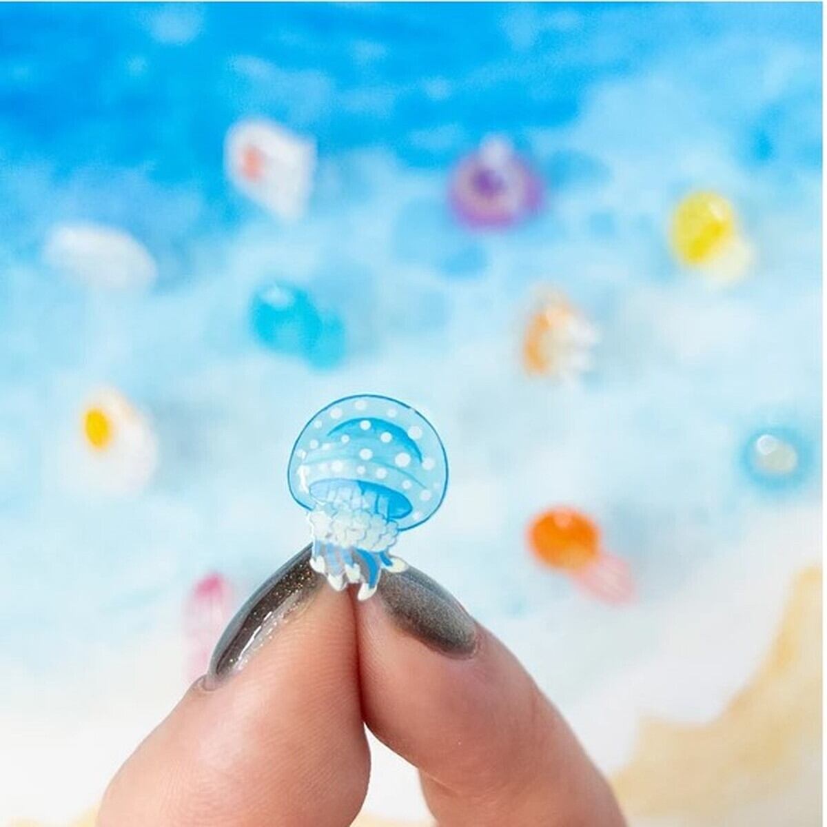 ちっちゃくてクリアなクラゲのイヤリングです。お好きなクラゲを2匹お選びください。プラバンに色鉛筆でひとつひとつ手描きし制作しております。表面はレジンでぷっくりツヤツヤです。素材:プラスチック、レジン、 樹脂イヤリング、 ネジバネ式イヤリング(メッキ加工、ニッケルフリー)着色:色鉛筆クラゲ名のページ(全12種類)がありますのでその中からお好きな2匹をご選択ください。※選択肢でうまくお選びできない場合はメッセージでお知らせください。ウリクラゲは縦の線上に置いたラメが角度でキラキラします。【大きさ】クラゲ1.2センチ〜1.8センチ【オプション】イヤリングパーツは、樹脂か、ネジバネ式(メッキ)のどちらかお選びいただけます。ネジバネ式イヤリングは表側から透けて見えますので、画像をご確認下さい。※選択肢でうまくお選びできない場合はメッセージでお知らせください。【ラッピング】プレゼント用ラッピングをご選択いただければ手作りの包装でお届けいたします。箱、リボンのカラーはおまかせください。通常用もプレゼント用もオリジナルの台紙付きです。着けない時はそのまま飾っていただけます。*************************商品について*ひとつひとつ手描き、手作りの為、サイズや色に多少の差や気泡がありますがご理解ください。ネジバネ式イヤリングにはニッケルフリーの素材を使用しておりますが、アレルギー反応には個人差がございます。肌に異変を感じましたら使用を中止し、医師にご相談ください。*お取り扱いについて*繊細な造りですので必要以上の力や熱が加わると破損してしまうことがありますのでご注意ください。着用後は汚れなどをやわらかい布で拭き、直射日光の当たらない場所で保管してください。