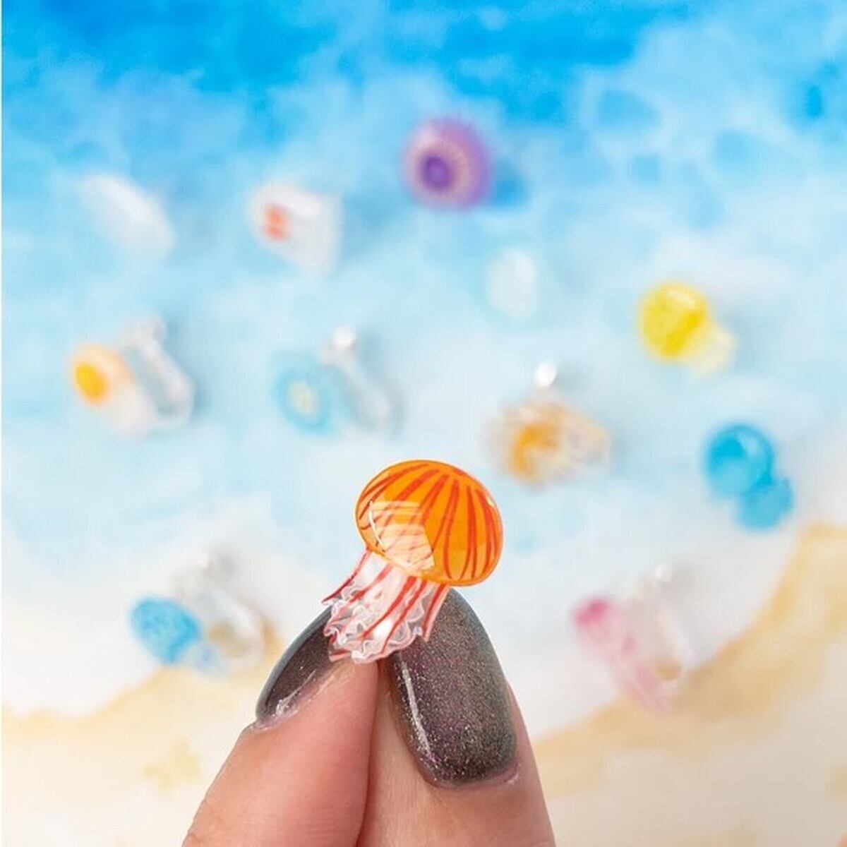 ちっちゃくてクリアなクラゲのイヤリングです。お好きなクラゲを2匹お選びください。