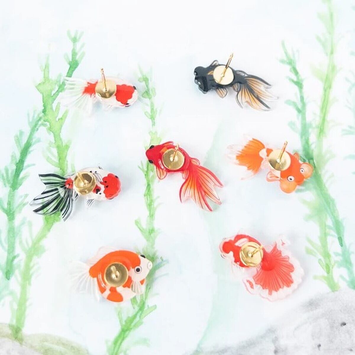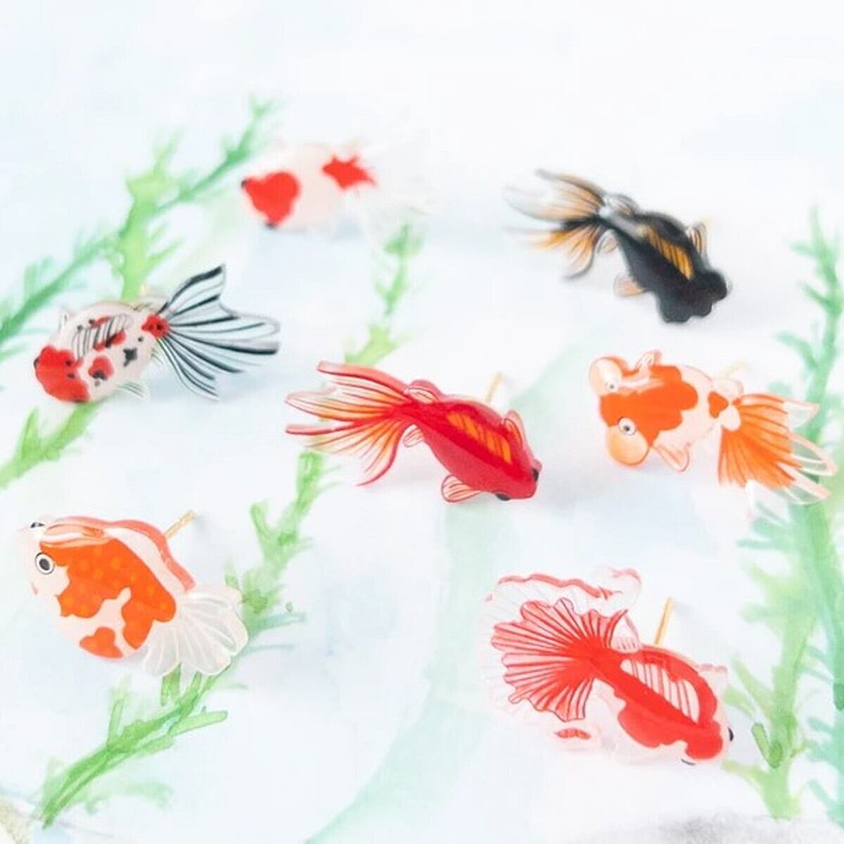 「金魚ピアス 選べる2匹」 金魚 ピアス お魚 浴衣 アクセサリー レディース 可愛い カラフル 日本製 ナチュラル プチギフト ギフト