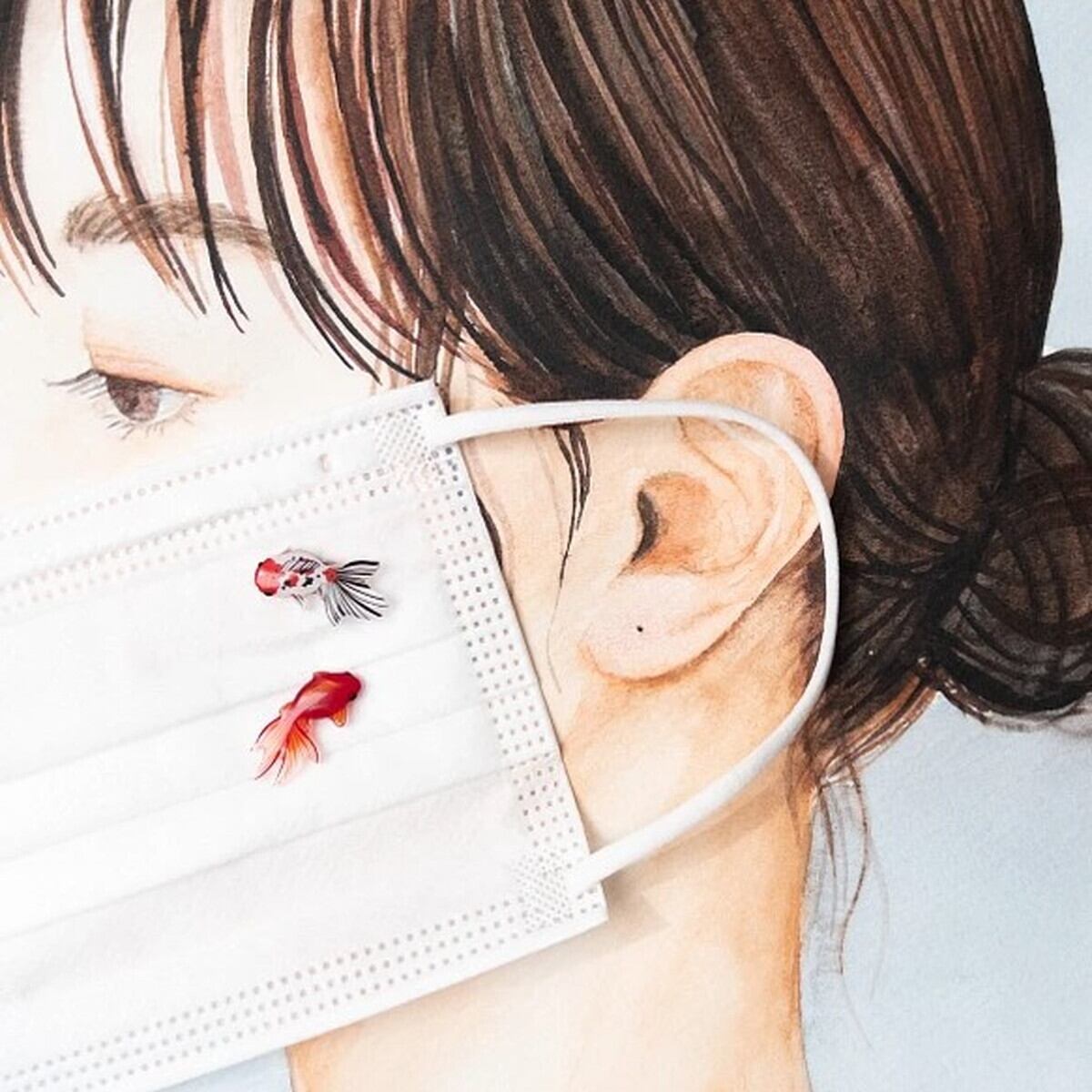 小さな金魚のマスクマグネットです。お好きな金魚の種類を2匹お選びください。クリアなプラバンに色鉛筆でひとつひとつ手描きし制作しております。表面はレジンでぷっくりツヤツヤです。金魚に接着してあるものと同じマグネットが1つずつ付きます。マスクの外側と内側からマグネットで挟むようしにてとめてください。お食事などでマスクを外す際は、無くさないようマスクケースをご使用ください。強力なネオジムマグネットを使用しています。マスク以外にも、マグネットピアスとしてやホワイトボードや冷蔵庫などにメモを付けるのにも使用できます。素材:プラスチック、レジン、ネオジムマグネット着色:色鉛筆金魚の種類を2点選び、お好きな2匹をご選択ください。※選択肢でうまくお選びできない場合はメッセージでお知らせください。同じ種類を2点でも可能です。金魚の向きはご指定がない限りこちらで選ばせていただきます。画像のように2匹が向き合うようになります。[ ラッピング ]プレゼント用ラッピングを選択いただければ手作りの包装でお届けいたします。箱、リボンのカラーはおまかせください。プレゼント用も通常包装も、手描きの台紙にのせてお届けいたします。台紙の裏側にマグネットをシールで貼り付けてあります。剥がしてご使用ください。*サイズ:琉金など 約2センチ ピンポンパール約1.8センチ *************************************************************商品について*ひとつひとつ手描き、手作りの為、サイズや色に多少の差や気泡がありますがご理解ください。強力なネオジムマグネットを使用しております。小さなお子様、ペットの誤飲には細心の注意をお願い致します。誤飲した可能性がある場合は、早急に病院で診察を受けて下さい。電子医療機器を使用している方、金属アレルギーをお持ちの方は着用をしないでください。*お取り扱いについて*繊細な造りですので必要以上の力や熱が加わると破損してしまうことがありますのでご注意ください。着用後は汚れなどをやわらかい布で拭き、直射日光の当たらない場所で保管してください。