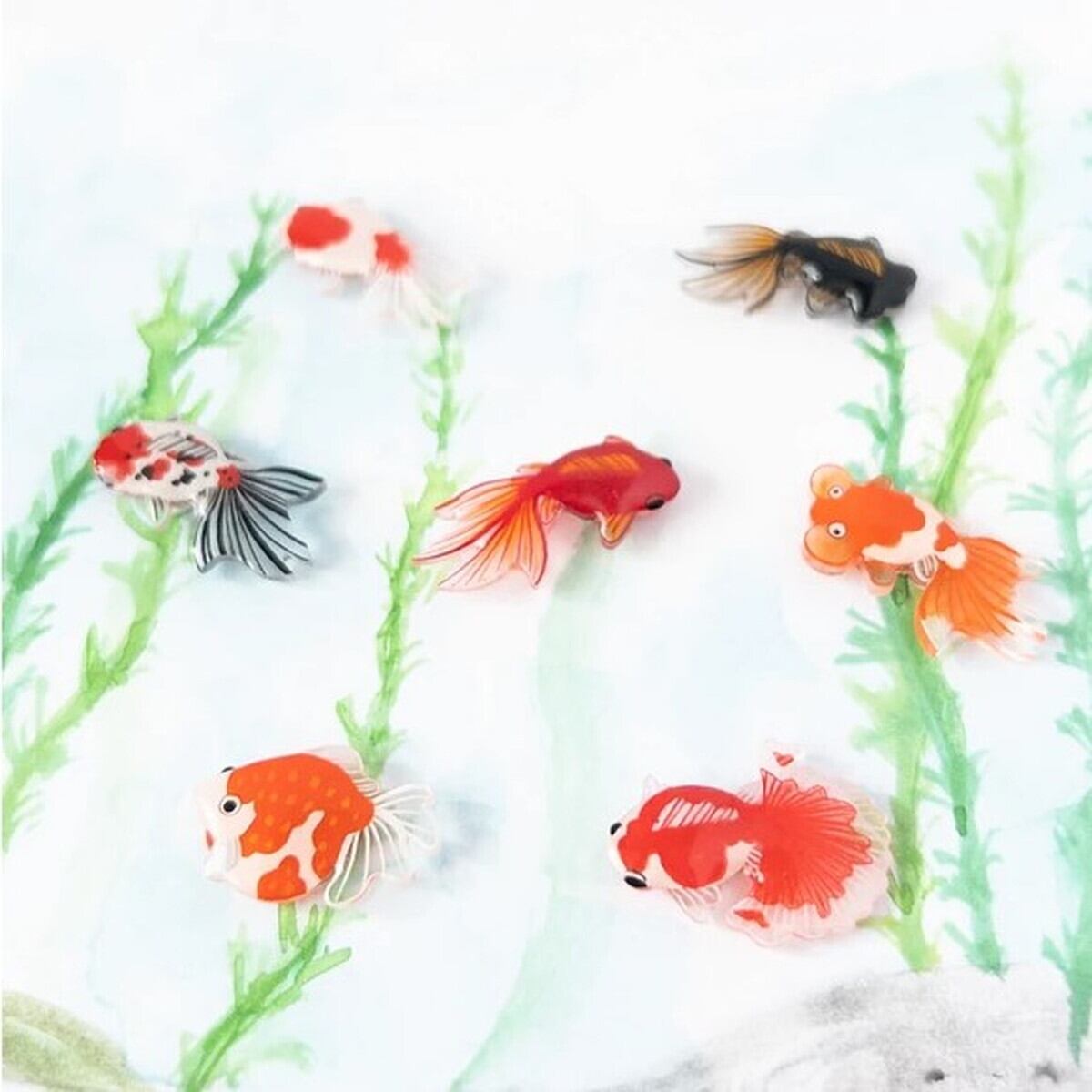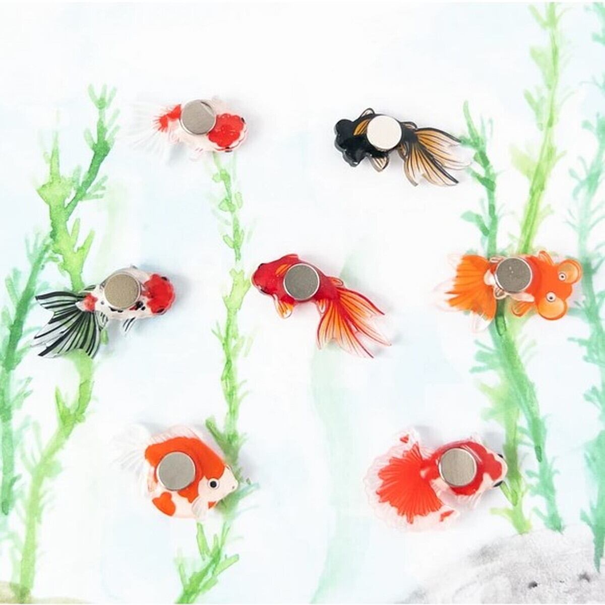 小さな金魚のマスクマグネットです。お好きな金魚を2匹お選びください。