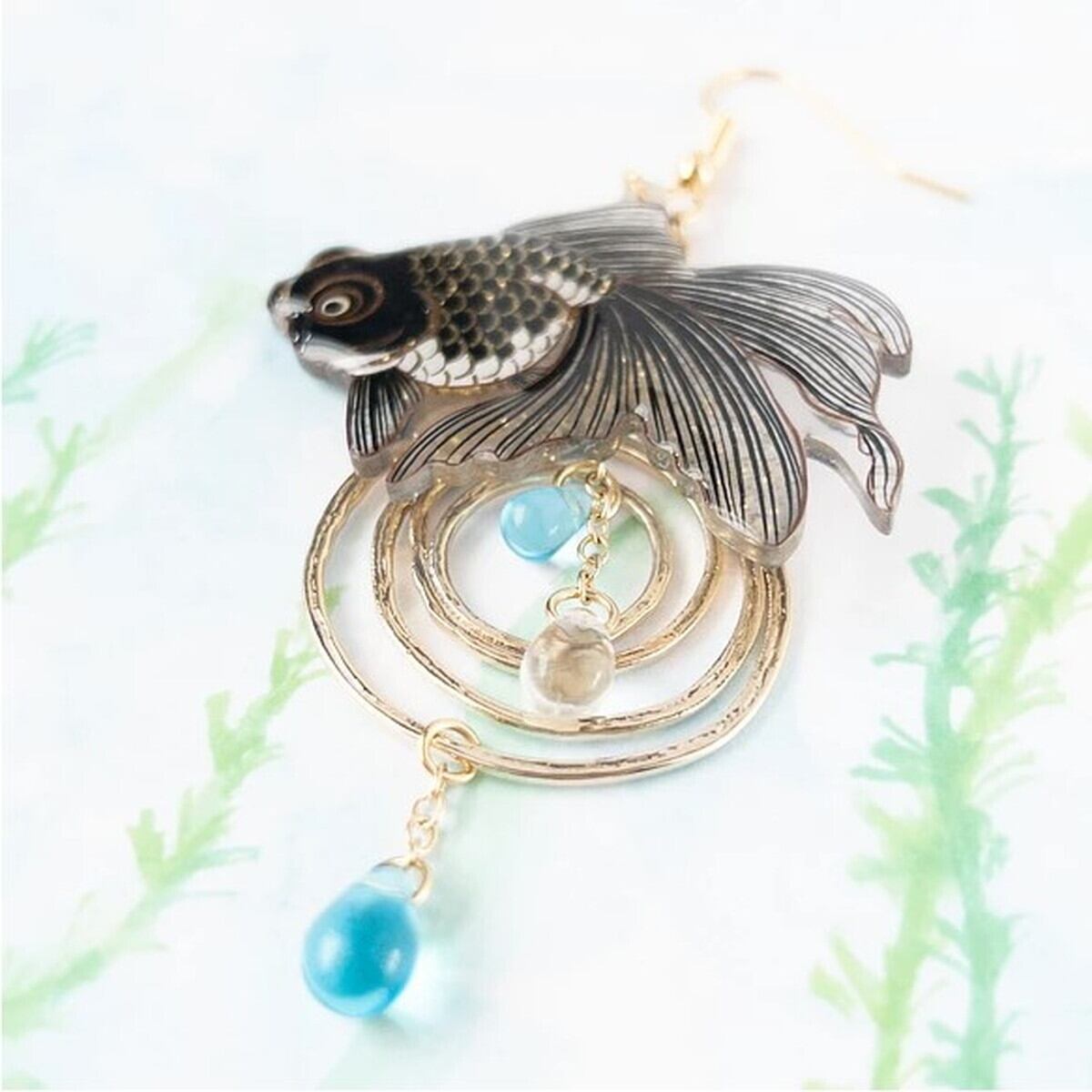 涼し気に泳ぐ、出目金のピアス/イヤリングです。