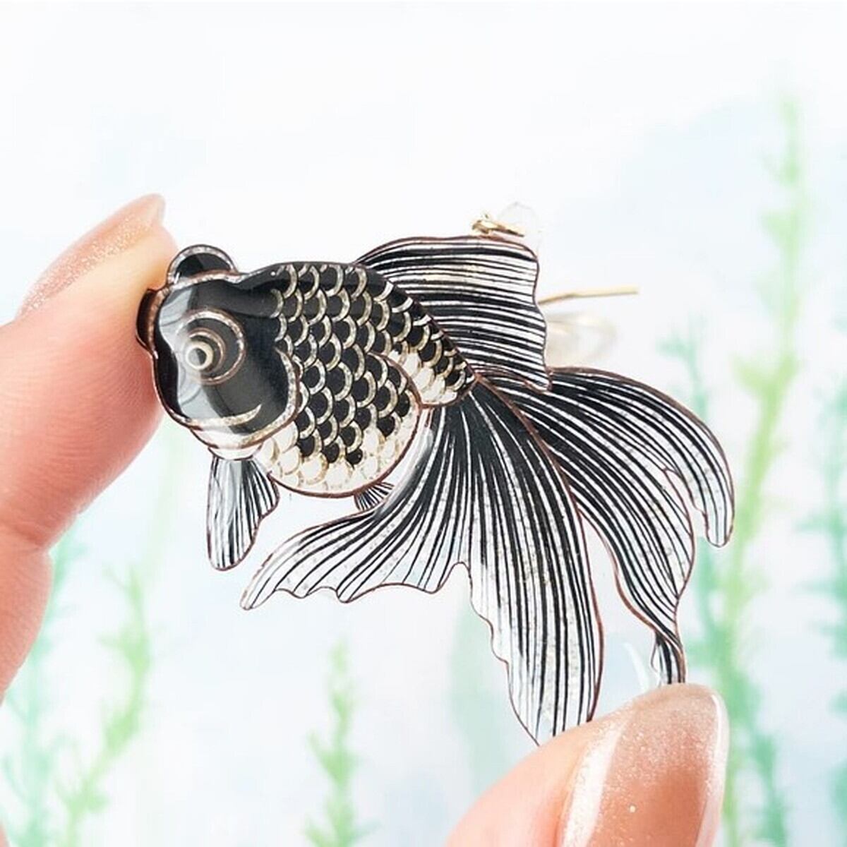 「金魚(出目金) 片耳ピアス イヤリング」 金魚 出目金 ピアス イヤリング 海の生き物 アクセサリー レディース 可愛い カラフル 日本製 ナチュラル プチギフト ギフト
