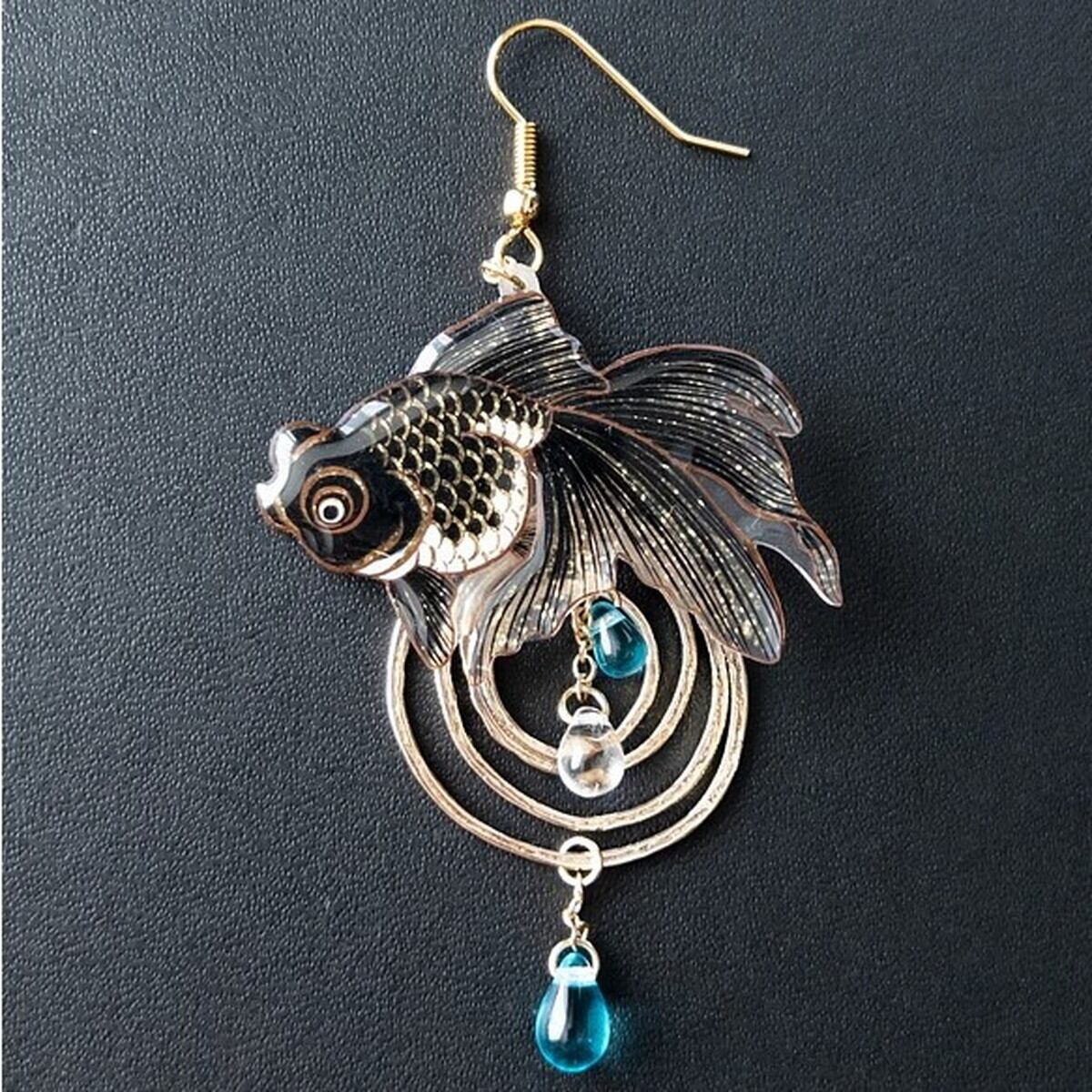 「金魚 出目金 片耳ピアス イヤリング」 金魚 出目金 ピアス イヤリング 海の生き物 アクセサリー レディース 可愛い カラフル 日本製 ナチュラル プチギフト ギフト
