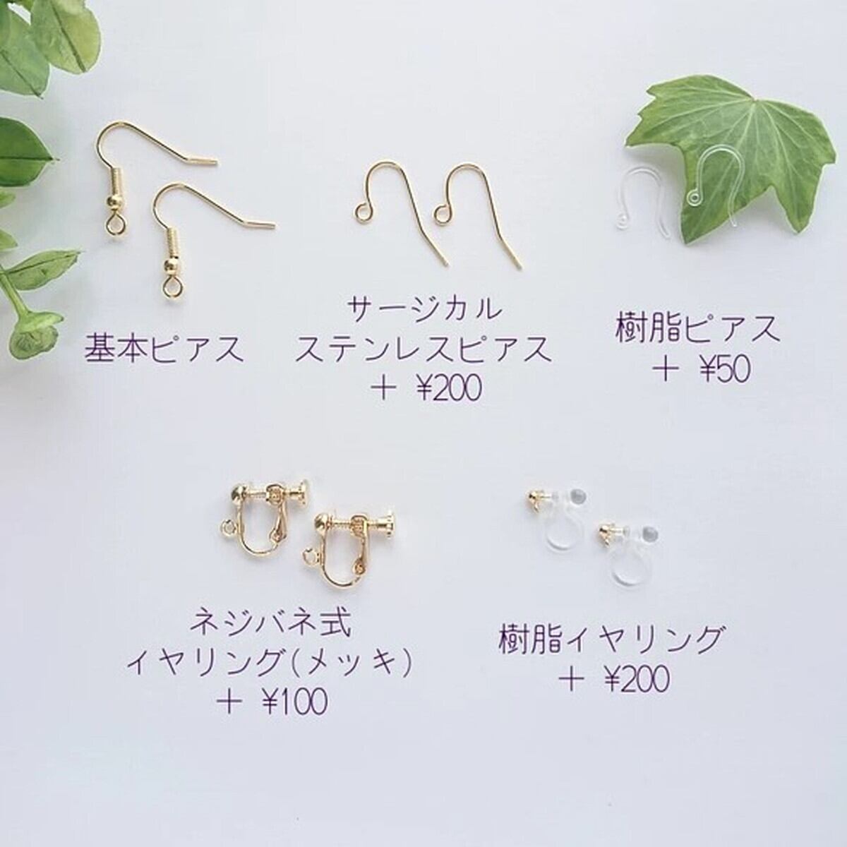 ゆらゆら泳ぐ金魚のピアス/イヤリングです。二匹連なった金魚をクリアなプラバンでつくりました。金魚の種類は長い尾ビレの「コメット」鉢の中を泳ぐ金魚を上から眺めているようなアングルにこだわりました。プラバンに色鉛筆でひとつひとつ手描きし制作しております。表面はレジンでぷっくりツヤツヤです。和風な金魚モチーフ。夏は浴衣に合わせてお祭りに行ってみてはいかがでしょうか。和風な服はもちろん、洋服などのカジュアルなスタイルにも似合うデザインです。左右セットでの販売です。*素材:プラスチック、レジン、ビーズ、金具*着色:色鉛筆*サイズ:金魚 大約2.6センチ 小約2.1センチ 全長約6.2センチ(ピアス含む)*変更など*[ピアス金具の変更] サージカルステンレスピアスに変更+200円 ネジバネ式イヤリングに変更+100円 樹脂ピアスに変更+50円 樹脂イヤリングに変更+200円※変更ご希望の方は選択肢にてお選びください。※うまくお選びできない場合はメッセージでお知らせください。金具(ピアス、イヤリング、繋ぎパーツ)は、 カラーをシルバーに変更可能です。 ご希望の方はメッセージにてお知らせください。[ラッピング]ギフトラッピング(+100円)を選択いただければ、箱から手作りの包装でお届けいたします。箱、リボンのカラーはおまかせください。ギフト用も通常包装も、手描きの台紙にのせてお届けいたします。台紙の絵は、丸い蓮と細長い水草の2種類ございますが希望がない限りランダムに選ばさせていただきます。*************************************************************商品について*ひとつひとつ手描き、手作りの為、サイズや色に多少の差や気泡がありますがご理解ください。金属アレルギーをお持ちの方、可能性のある方はサージカルステンレス、樹脂への変更をおすすめいたしますが、その他のつなぎ部品に金属を使用しているのでご注意ください。*お取り扱いについて*繊細な造りですので必要以上の力や熱が加わると破損してしまうことがありますのでご注意ください。着用後は汚れなどをやわらかい布で拭き、直射日光の当たらない場所で保管してください。