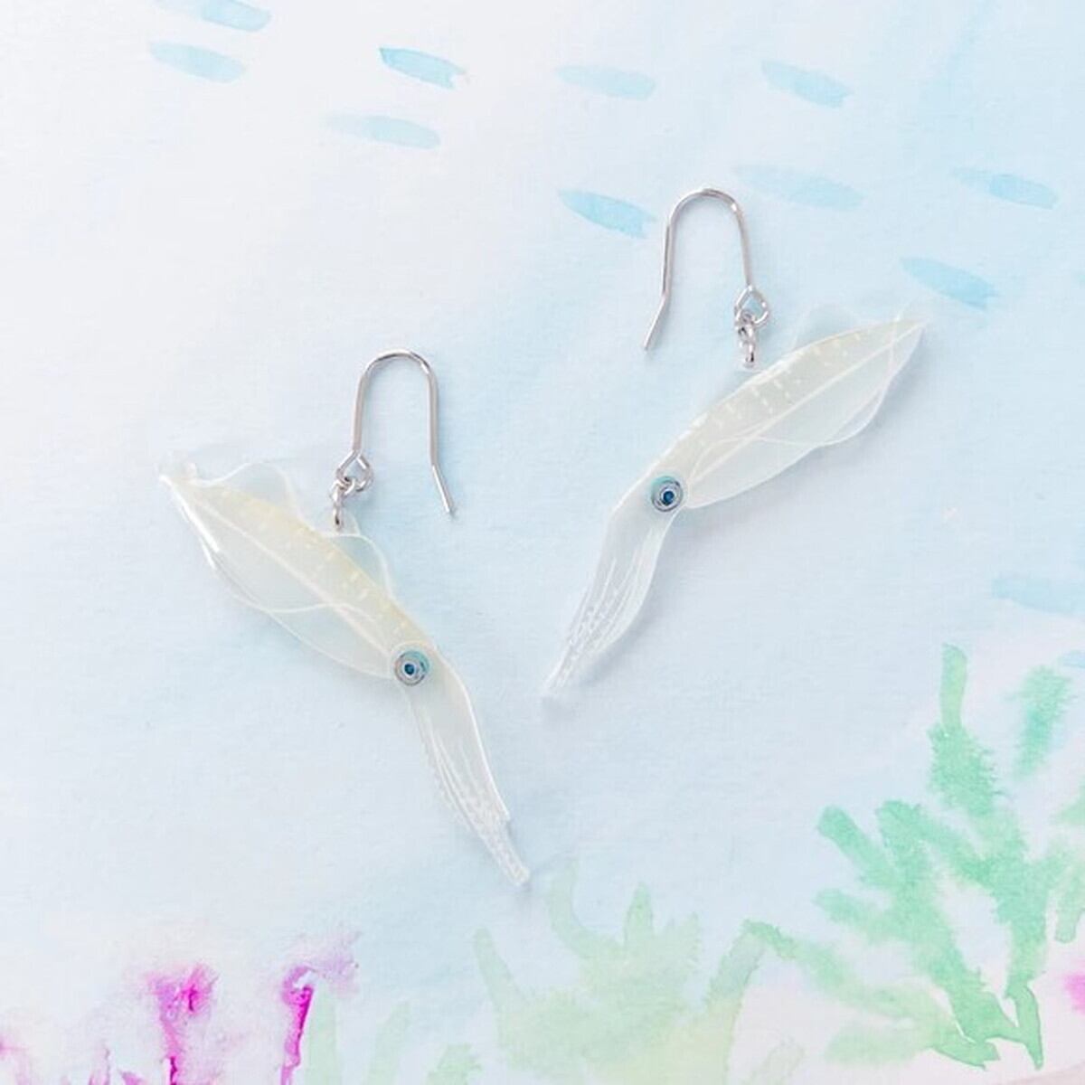 「アオリイカ ピアス イヤリング」 アオリイカ ピアス イヤリング 海の生き物 アクセサリー レディース 可愛い カラフル 日本製 ナチュラル プチギフト ギフト