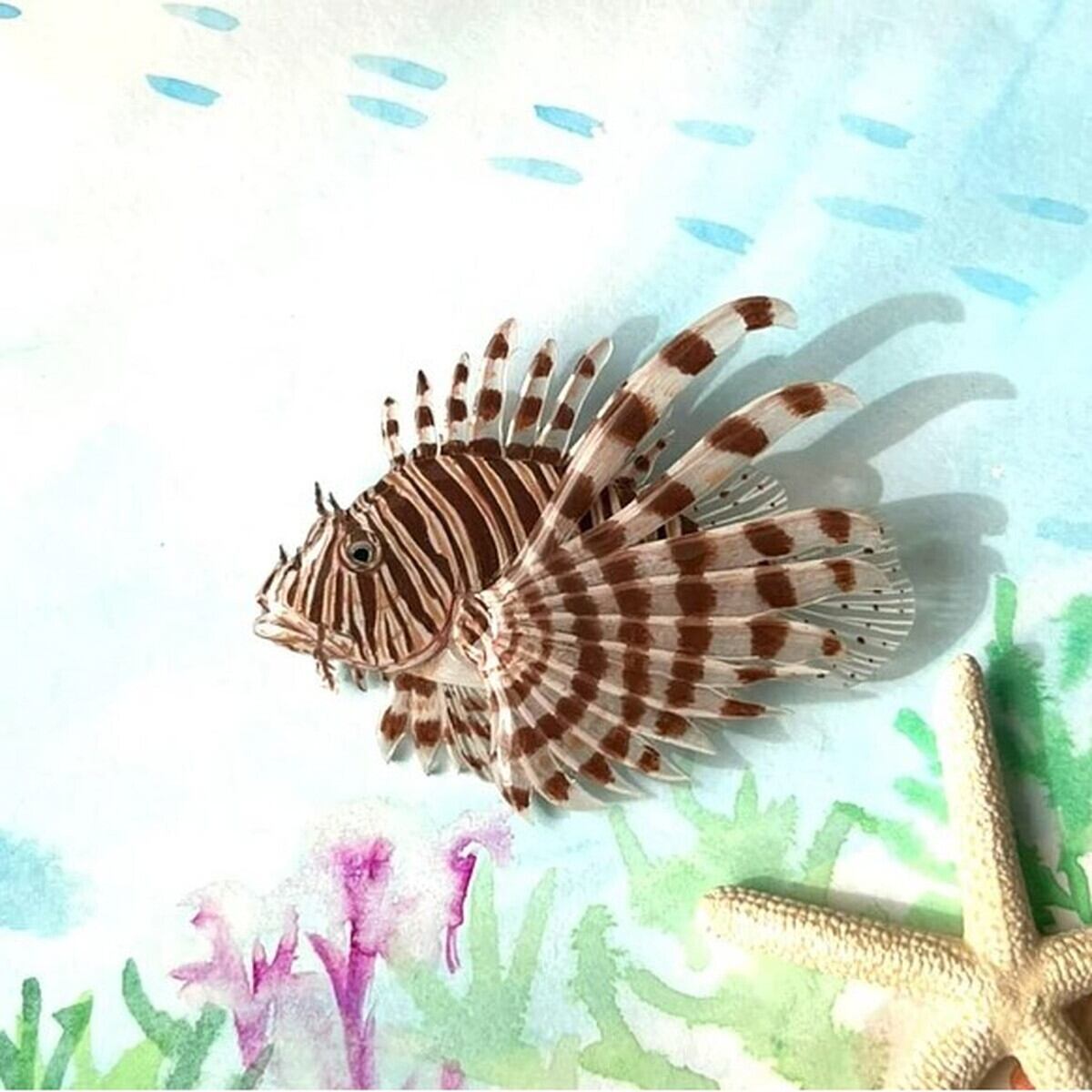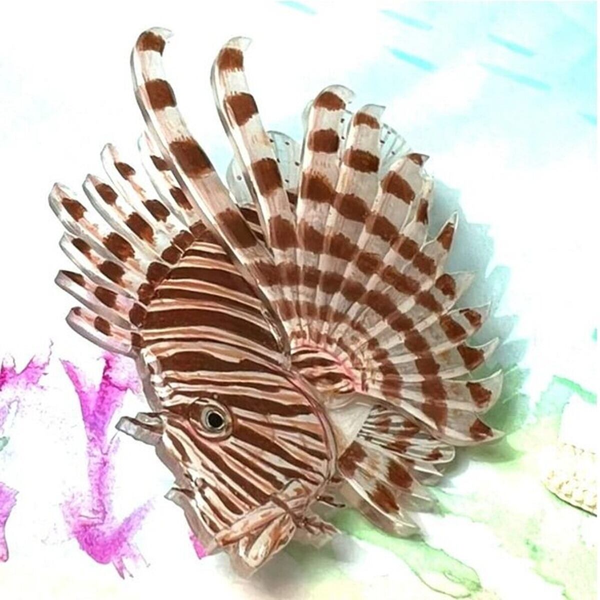 珊瑚礁に住むハナミノカサゴのブローチです。 有料でマグネットにも変更可能です。