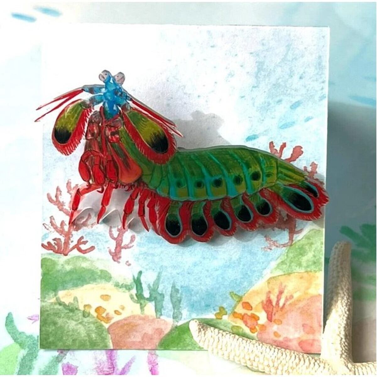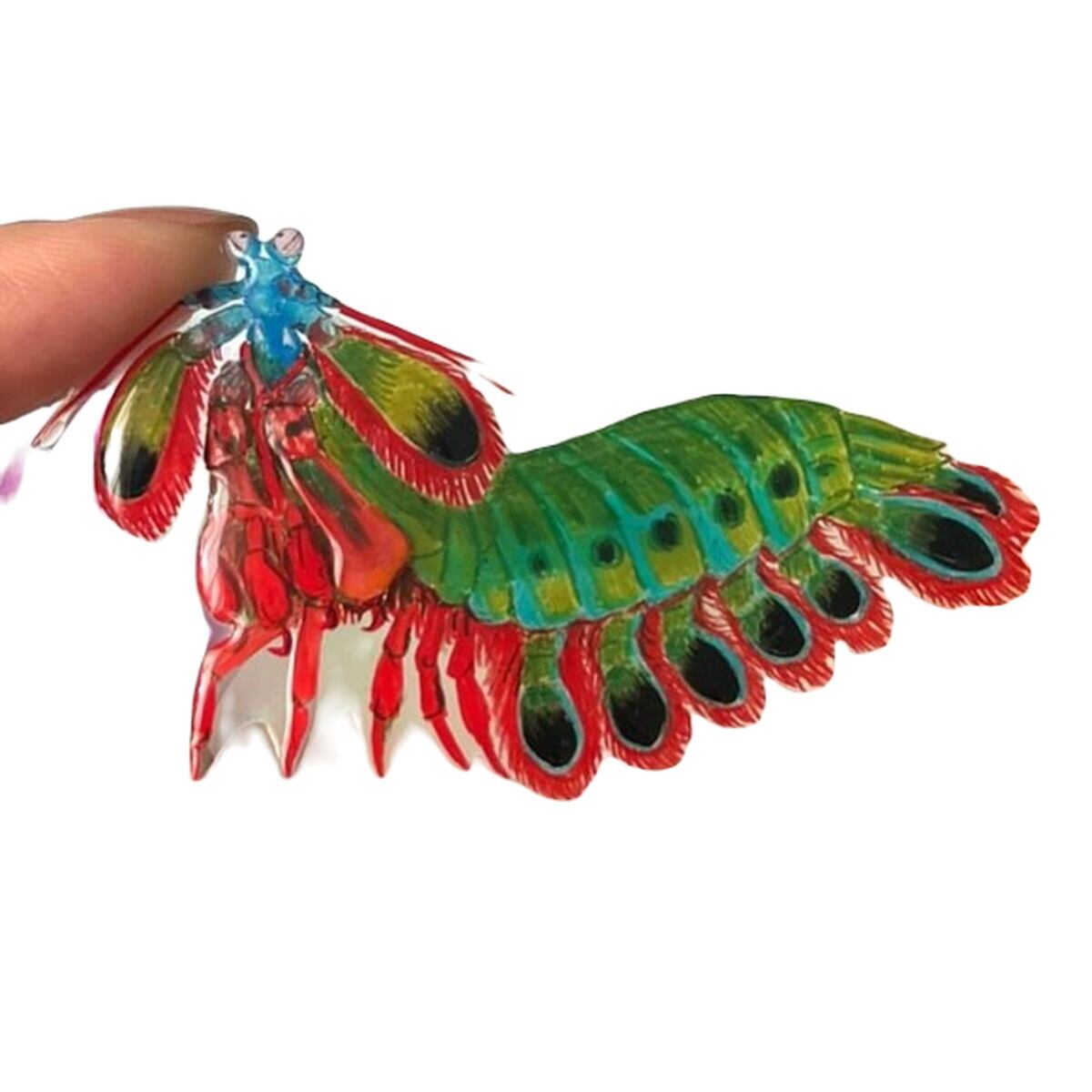 珊瑚礁に住むカラフルなモンハナシャコのブローチです。 有料でマグネットにも変更可能です。