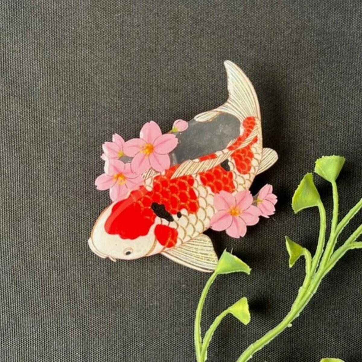 「鯉と桜 ブローチ」 鯉 桜 ブローチ ピアス イヤリング 海の生き物 魚 アクセサリー レディース 可愛い カラフル 日本製 ナチュラル プチギフト ギフト