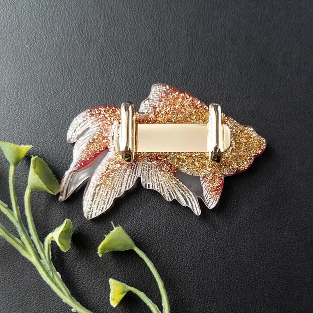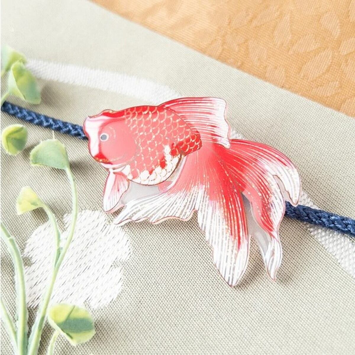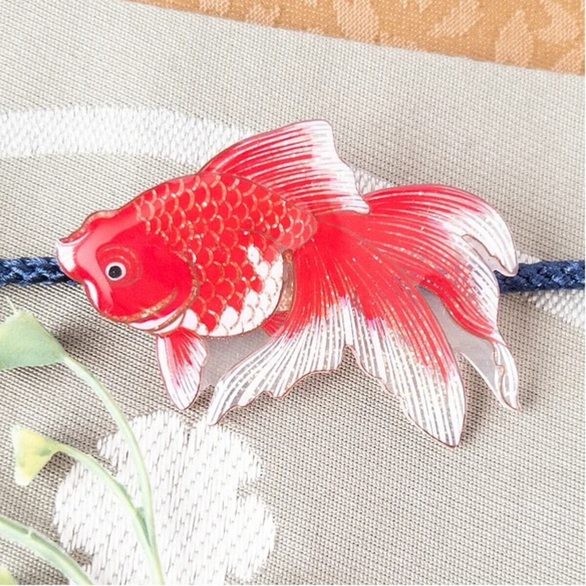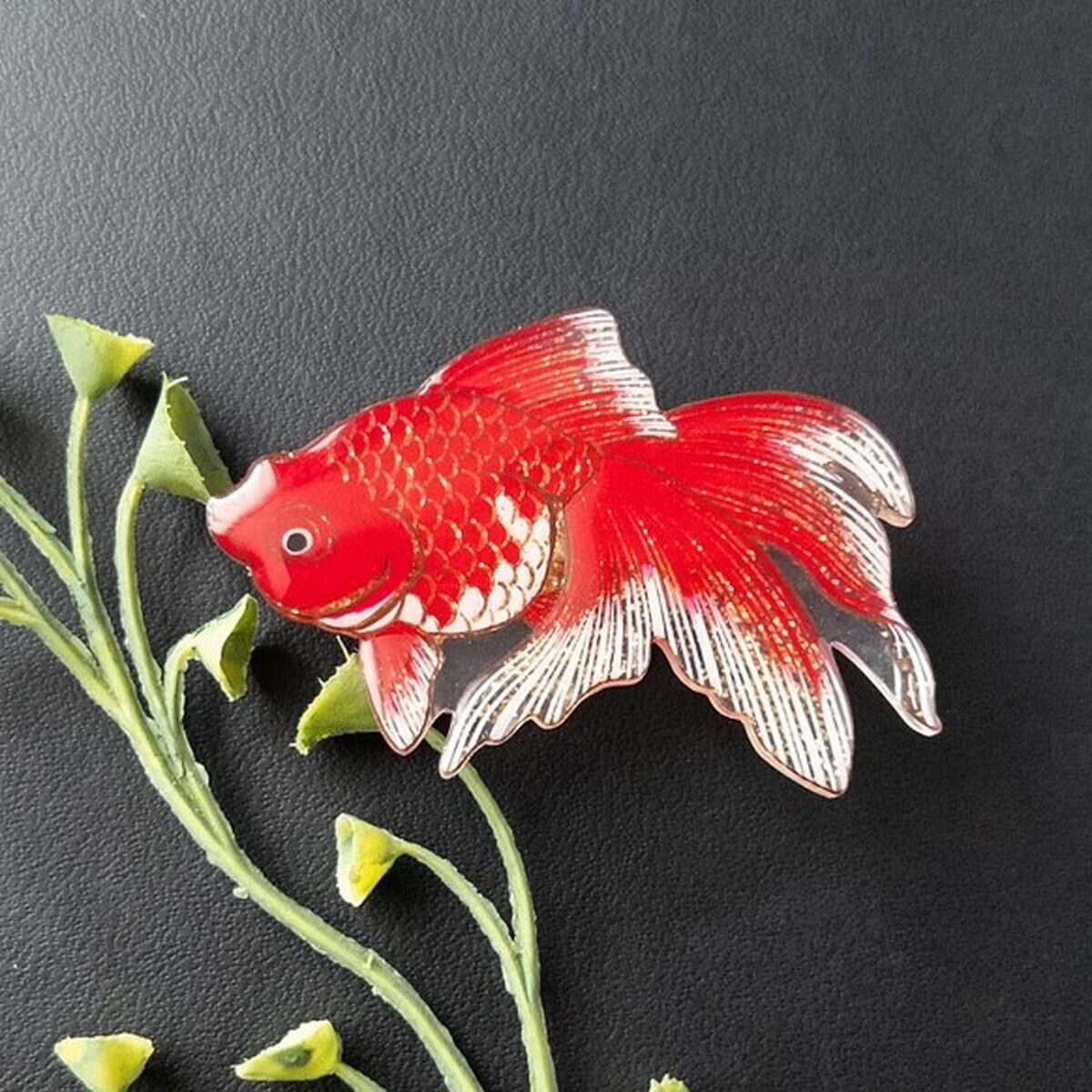 「金魚 琉金 帯留め」 金魚 琉金 帯留め ピアス イヤリング 海の生き物 魚 アクセサリー レディース 可愛い カラフル 日本製 ナチュラル プチギフト ギフト