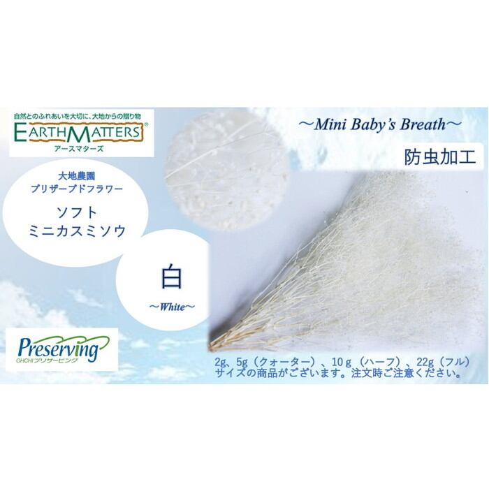 大地農園!プリザーブドフラワー 2g分【ソフトミニカスミ草 白】プリザ カスミソウ カスミ草 花材 ハーバリウム おしゃれ かわいい プレゼント 贈り物 オオチノウエン