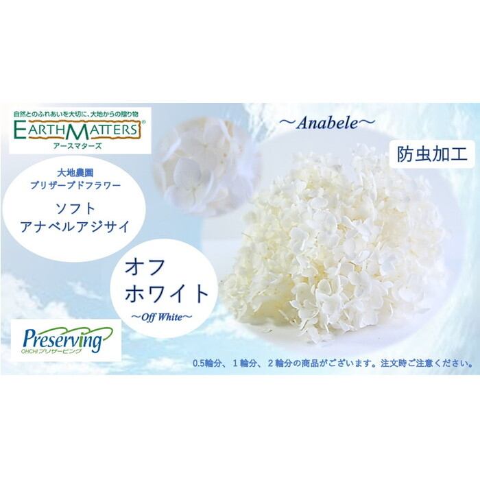 大地農園!プリザーブドフラワー 0.5輪分【ソフトアナベルアジサイ オフホワイト】プリザ アジサイ 紫陽花 花材 ハーバリウム おしゃれ かわいい プレゼント 贈り物 オオチノウエン ソフトピラミッドアジサイ・ヘッド