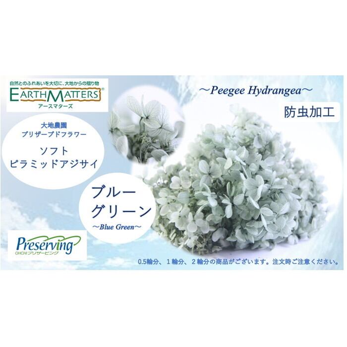 大地農園!プリザーブドフラワー 1輪分【ソフトピラミッドアジサイ ブルーグリーン】プリザ アジサイ 紫陽花 花材 ハーバリウム おしゃれ かわいい プレゼント 贈り物 オオチノウエン ソフトピラミッドアジサイ・ヘッド