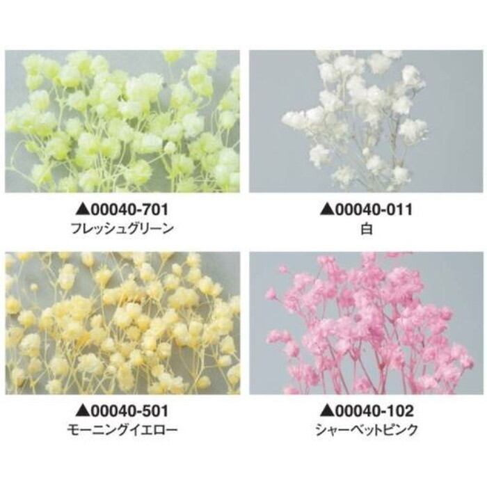 多様なカラーアソートを在庫しております。●特徴・中ぶりで可愛いカスミ草(ミリオンスター)です。・フォームを隠したり、ほかの花材の隙間に入れたりして、便利に使える定番のプリザーブドフラワーです。※配送の都合上、商品を箱に直接梱包することもございます。※なるべくふんわりと梱包いたしますが、配送による破損、潰れ、ほころびなどが生じることがございます。ご心配な方は宅配便をご指定下さい。※配送の都合上、根本をカットする場合がございます。参考重量はカット前の重量となります。※染料が切り口や表面からもれ、色移りすることがありますので、ご注意ください※天然素材を使用している為、商品により色、サイズなど多少の違いが生じる場合がございます。カラーバリエーション00040-011【白】