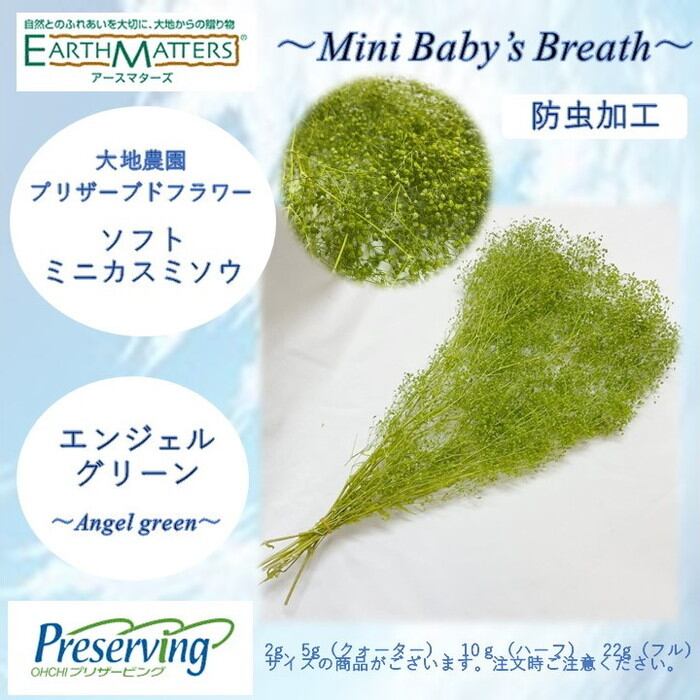 大地農園!プリザーブドフラワー 「5g ソフトミニカスミ草 エンジェルグリーン」プリザ カスミソウ カスミ草 花材 ハーバリウム おしゃれ かわいい プレゼント 贈り物 オオチノウエン