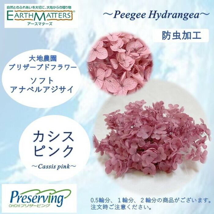 大地農園!プリザーブドフラワー 「0.5輪分 アナベルアジサイ カシスピンク」プリザ アジサイ 紫陽花 花材 ハーバリウム おしゃれ かわいい プレゼント 贈り物 オオチノウエン ソフトピラミッドアジサイ・ヘッド