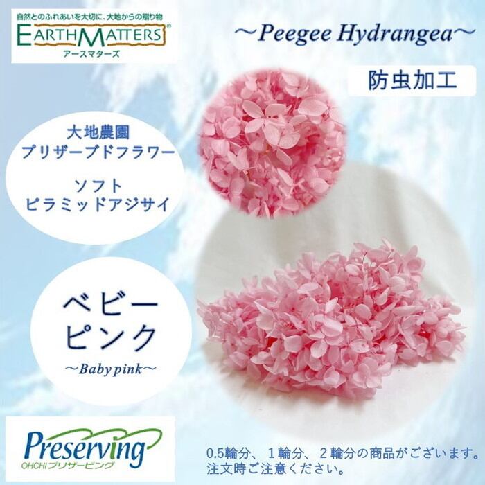 大地農園!プリザーブドフラワー 「1輪分 ソフトピラミッドアジサイ ベビーピンク」プリザ アジサイ 紫陽花 花材 ハーバリウム おしゃれ かわいい プレゼント 贈り物 オオチノウエン ソフトピラミッドアジサイ・ヘッド