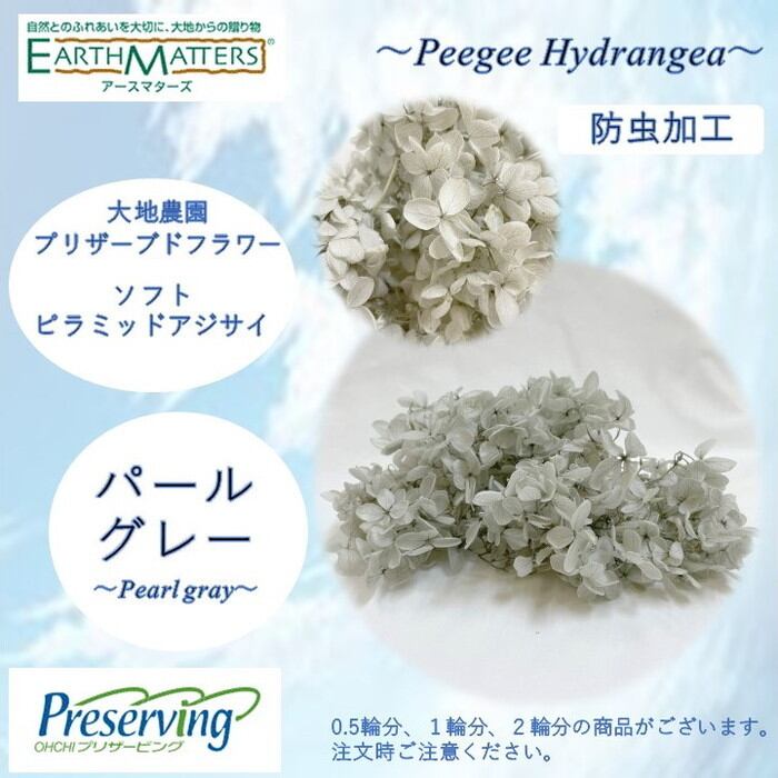 大地農園!プリザーブドフラワー 「2輪分 ソフトピラミッドアジサイ パールグレー」プリザ アジサイ 紫陽花 花材 ハーバリウム おしゃれ かわいい プレゼント 贈り物 オオチノウエン ソフトピラミッドアジサイ・ヘッド