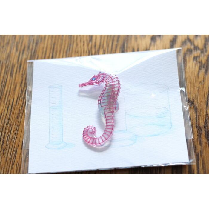 透明標本風アクセサリー【ブローチ】プラバンに、一つ一つ色鉛筆で、細部まで心を込めて描いた一品です。表面にはレジンコーティングを施してあります。印刷とは違い、全く同じものはありません。それは本物の透明標本と同様です。商品ラインナップ【アカハライモリ】【タツノオトシゴ】【ジャクソンカメレオン】【アカミミガメ】【フエヤッコダイ】【アマガエル】【リュウキン】【ボロカサゴ】【シルバーアロワナ】大きさ 縦 約5cm 横 約3cm特記事項ひとつひとつ手作りのため、サイズや色に多少の差や気泡があります。また、強い負担や熱が加わると破損してしまうことがあります。お取り扱いにご注意ください。色味のイメージが異なる場合もあります。金属アレルギーをお持ちの方、可能性のある方はご使用をお控えください。※この作品は、アクセサリー作家ねぎねぎによって作られました。※在庫がない場合は、受注生産となりますので、よろしくお願いいたします。