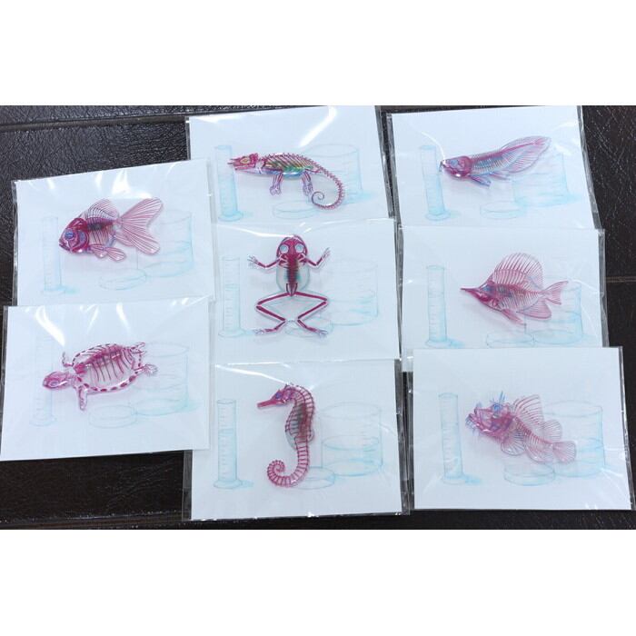 弊社では、透明標本やその関連グッズ。またストームグラス、香水ボトル、ボルトマンなどのハンドメイド雑貨を販売しております。 透明標本ではオリジナルの透明標本を代理作製もいたします。飼われていたペットを永遠にお手元に。こんな標本作ってほしい、そんなご要望承りますので、お気軽にご相談ください。 高価な試薬を必要とする透明標本のコストを下げるため、従来の方法とは全く別の方法でコストダウンに成功しました。 生き物の骨格を調べることも、インテリアとして重宝されるような透明標本を製作しています。 また、古くなったグリセリンの交換など、アフターサービスも承ります。ストームグラスでは、内容液だけの販売も行なっております。中世の航海士たちが使用していた天気管を現代に蘇らせ、皆様にお届けします。