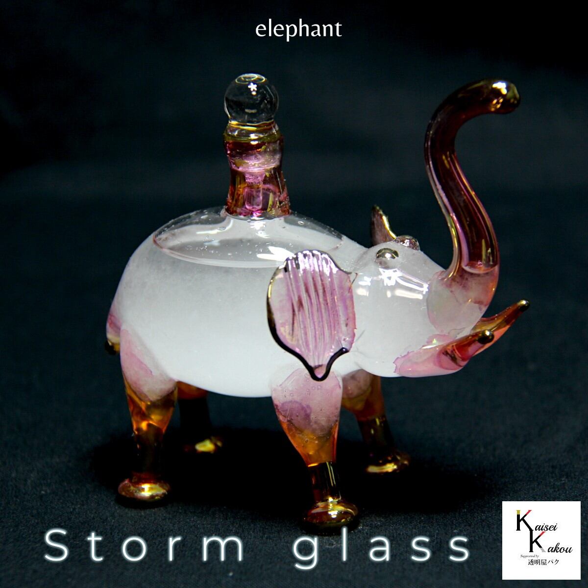 可愛らしいゾウさんのボトルに入った透明屋パクオリジナルのストームグラスです。 ストームグラス 「ゾウさんのストームグラス ピンク」ストームグラス エジプシャングラス 象 エレファント ボトル ウェザーグラス 天気 気象計グッズ 手作り 手づくり ハンドメイド インテリアグッズ インテリア雑貨 おもしろグッズ おもしろ雑貨 プレゼント 贈り物 可愛らしいゾウさんのボトルに入った透明屋パクオリジナルのストームグラスです。 ひとつひとつが手作りの可愛らしいゾウさんの形のストームグラスです。 サイズ:幅5×奥行10×高さ10cm(±2cm) 手作りの為、サイズが少々異なる場合がございます。 弊社ではこちらのストームグラスをはじめとしたオリジナル商品を取り扱っております。 ----------------------------------------------------------------- ストームグラスは19世紀初頭にヨーロッパにて航海時に気象情報を予測するのに使われていました。 複数の化学薬品をアルコールに溶かしてガラス容器に詰めたもので、天候によって結晶の様子が変化すると言われています。 英国海軍のロバート・フィッツロイ提督が、この装置を詳細に研究したことから、別名「フィッツロイの気象計」とも呼ばれています。 実際には気象状況と液体内部の結晶化の関連性については、100%ではありません。 正確な気象情報を予測する為にはお使いできませんが、 周りの気象環境の変化によって液体と結晶がユニークに変化しますので、観賞用のインテリアとしてお楽しみ下さい。 ----------------------------------------------------------------- 注意事項 ○環境によって、結晶が変化しますので、写真のような状態が保たれるわけではございません。夏の暑い日には一時的に透明になりますが、再び結晶は現れます。無くなることはありません。 ○直射日光を避けて保管してください。 ○加熱や急冷(電子レンジ)はご遠慮ください ○内用液にはアルコールや硝酸カリウム、塩化アンモニウムなどが入っております。火器の近くに置かないでください。小児の手の届かないところに保管し、誤飲しないようにお願いします。割れてしまい、手などについた場合には水でよく洗ってください。 〇ハンドメイドガラス製品につき小傷や黒ずみがある場合がございます。ご了承ください。 〇先端部は特に折れやすいです。 〇万一、破損した場合は水拭きをしてください。内用液の匂いがしますが、吸引しても問題ありません。 〇ハンドメイド品につき細かな装飾や、色、模様、大きさが写真と異なることがございます。特にピンク系、ブルー系は、ひとつひとつの色味が異なります。ご注意ください。 結晶はごくゆっくりと変化します。年単位でお楽しみ下さい。 製品はとてもデリケートなため、接触、圧力、温度変化により、塗装やメッキがダメージを受けることがございます。お取り扱いには十分にご注意ください。 全く同じもののお届けはできませんので、あらかじめご了承ください。 5