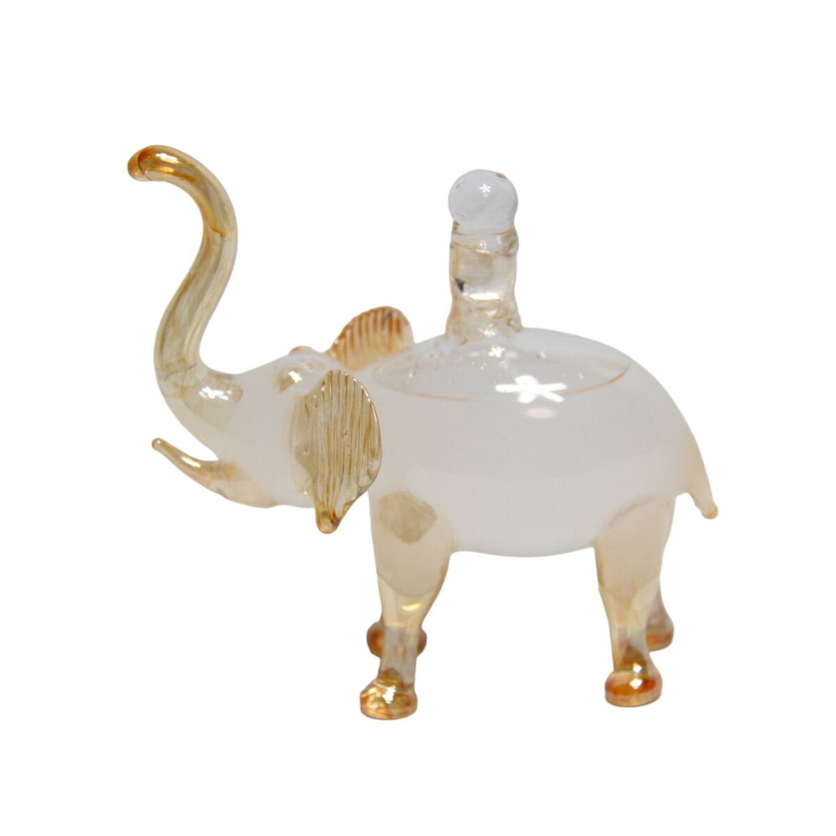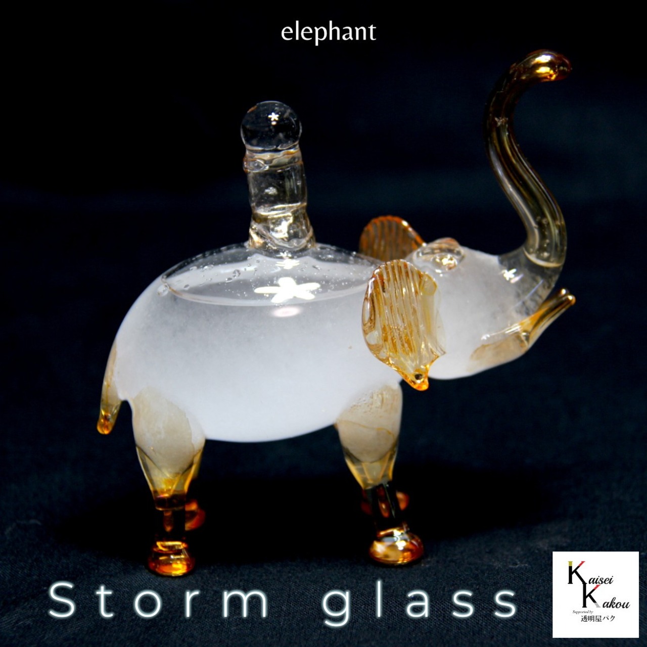 可愛らしいゾウさんのボトルに入った透明屋パクオリジナルのストームグラスです。 ストームグラス 「ゾウさんのストームグラス イエロー」ストームグラス エジプシャングラス 象 エレファント ボトル ウェザーグラス 天気 気象計グッズ 手作り 手づくり ハンドメイド インテリアグッズ インテリア雑貨 おもしろグッズ おもしろ雑貨 プレゼント 贈り物 可愛らしいゾウさんのボトルに入った透明屋パクオリジナルのストームグラスです。 ひとつひとつが手作りの可愛らしいゾウさんの形のストームグラスです。 サイズ:幅5×奥行10×高さ10cm(±2cm) 手作りの為、サイズが少々異なる場合がございます。 弊社ではこちらのストームグラスをはじめとしたオリジナル商品を取り扱っております。 ----------------------------------------------------------------- ストームグラスは19世紀初頭にヨーロッパにて航海時に気象情報を予測するのに使われていました。 複数の化学薬品をアルコールに溶かしてガラス容器に詰めたもので、天候によって結晶の様子が変化すると言われています。 英国海軍のロバート・フィッツロイ提督が、この装置を詳細に研究したことから、別名「フィッツロイの気象計」とも呼ばれています。 実際には気象状況と液体内部の結晶化の関連性については、100%ではありません。 正確な気象情報を予測する為にはお使いできませんが、 周りの気象環境の変化によって液体と結晶がユニークに変化しますので、観賞用のインテリアとしてお楽しみ下さい。 ----------------------------------------------------------------- 注意事項 ○環境によって、結晶が変化しますので、写真のような状態が保たれるわけではございません。夏の暑い日には一時的に透明になりますが、再び結晶は現れます。無くなることはありません。 ○直射日光を避けて保管してください。 ○加熱や急冷(電子レンジ)はご遠慮ください ○内用液にはアルコールや硝酸カリウム、塩化アンモニウムなどが入っております。火器の近くに置かないでください。小児の手の届かないところに保管し、誤飲しないようにお願いします。割れてしまい、手などについた場合には水でよく洗ってください。 〇ハンドメイドガラス製品につき小傷や黒ずみがある場合がございます。ご了承ください。 〇先端部は特に折れやすいです。 〇万一、破損した場合は水拭きをしてください。内用液の匂いがしますが、吸引しても問題ありません。 〇ハンドメイド品につき細かな装飾や、色、模様、大きさが写真と異なることがございます。特にピンク系、ブルー系は、ひとつひとつの色味が異なります。ご注意ください。 結晶はごくゆっくりと変化します。年単位でお楽しみ下さい。 製品はとてもデリケートなため、接触、圧力、温度変化により、塗装やメッキがダメージを受けることがございます。お取り扱いには十分にご注意ください。 全く同じもののお届けはできませんので、あらかじめご了承ください。 5
