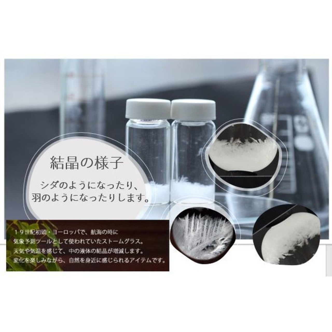 周りの気象環境の変化によって液体と結晶がユニークに変化します。 天気が分かる!「ストームグラス ミルキーホワイトキャップ SSF100」 天気管 天気 クリスマス ツリー フィッツロイ ミニ ボトル ウェザーグラス 天気 気象計グッズ インテリア インテリア小物 置物 瓶 小瓶 ガラス おもしろグッズ おもしろ雑貨 プレゼント 贈り物 周りの気象環境の変化によって液体と結晶がユニークに変化します。 置き場所は、玄関先がオススメ! *天気が分かるストームグラス *ミルキーホワイトキャップ 中世のヨーロッパの航海士たちがこのビンの結晶をみて天気を予想し、航海に役立てたと言われています。 冬の雪や霜のときには、管の高い位置まで沈殿物が見え、とても白く、点状になります。 夏のとても天気がよい日には沈殿物は管の非常に低い位置に留まります。 結晶はごくゆっくりと変化します。年単位でお楽しみ下さい。 ----------------------------------------------------------------- ストームグラスは19世紀初頭にヨーロッパにて航海時に気象情報を予測するのに使われていました。 複数の化学薬品をアルコールに溶かしてガラス容器に詰めたもので、天候によって結晶の様子が変化すると言われています。 英国海軍のロバート・フィッツロイ提督が、この装置を詳細に研究したことから、別名「フィッツロイの気象計」とも呼ばれています。 実際には気象状況と液体内部の結晶化の関連性については、100%ではありません。 正確な気象情報を予測する為にはお使いできませんが、 周りの気象環境の変化によって液体と結晶がユニークに変化しますので、アクセサリーや観賞用のインテリアとしてお楽しみ下さい。 ----------------------------------------------------------------- ○環境によって、結晶が変化しますので、写真のような状態が保たれるわけではございません。夏の暑い日には一時的に透明になりますが、再び結晶は現れます。無くなることはありません。 ○直射日光を避けて保管してください。 ○加熱や急冷(電子レンジ)はご遠慮ください ○内用液にはアルコールや硝酸カリウム、塩化アンモニウムなどが入っております。火器の近くに置かないでください。小児の手の届かないところに保管し、誤飲しないようにお願いします。割れてしまい、手などについた場合には水でよく洗ってください。 〇万一、破損した場合は水拭きをしてください。内用液の匂いがしますが、吸引しても問題ありません。 〇環境への配慮から梱包資材にはリサイクル品を用いますので、あらかじめご了承ください。 5