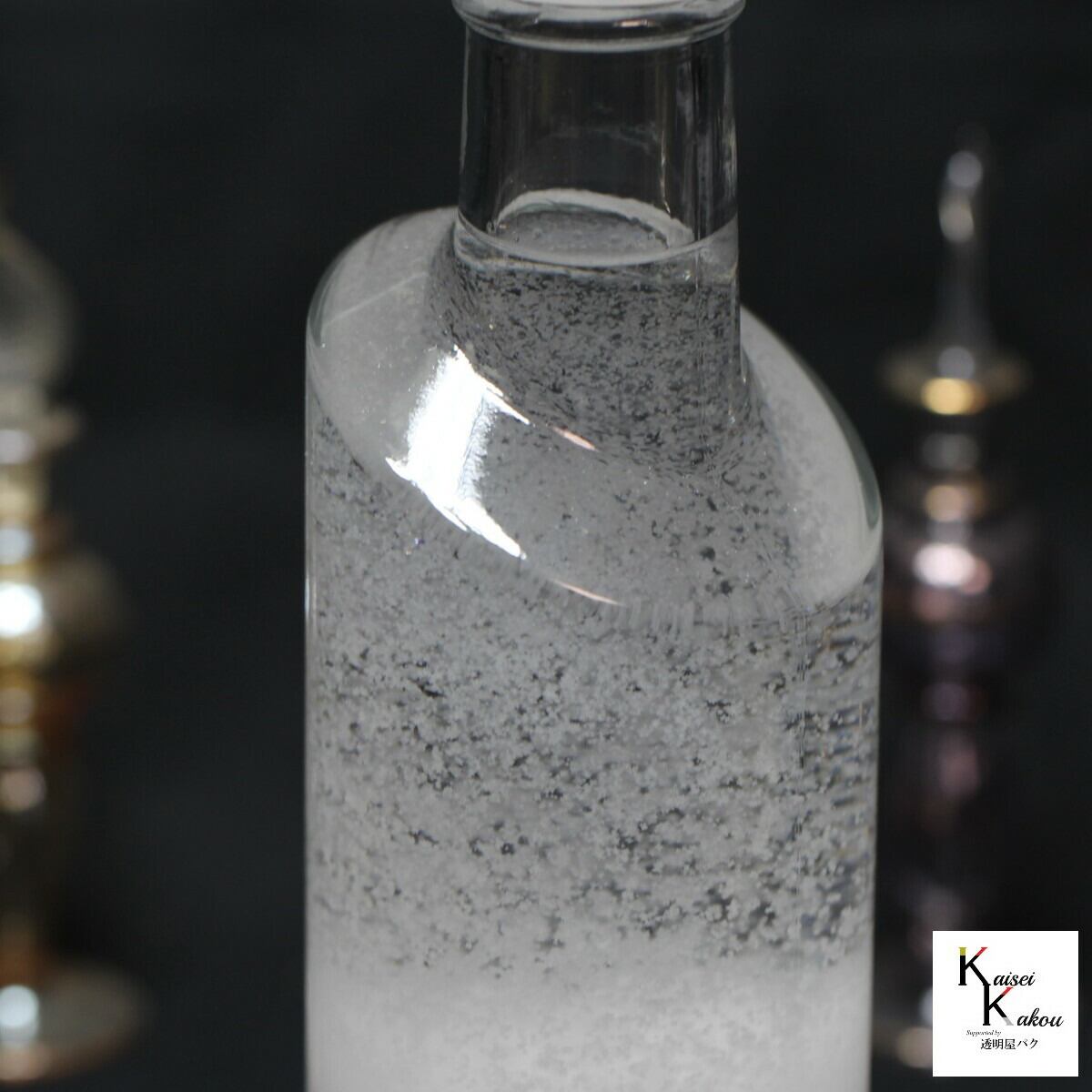 周りの気象環境の変化によって液体と結晶がユニークに変化します。 天気が分かる!「ストームグラス ミルキーホワイトキャップ SSH300」 天気管 天気 クリスマス ツリー フィッツロイ ミニ ボトル ウェザーグラス 天気 気象計グッズ インテリア インテリア小物 置物 瓶 小瓶 ガラス おもしろグッズ おもしろ雑貨 プレゼント 贈り物 周りの気象環境の変化によって液体と結晶がユニークに変化します。 置き場所は、玄関先がオススメ! *天気が分かるストームグラス *ミルキーホワイトキャップ 中世のヨーロッパの航海士たちがこのビンの結晶をみて天気を予想し、航海に役立てたと言われています。 冬の雪や霜のときには、管の高い位置まで沈殿物が見え、とても白く、点状になります。 夏のとても天気がよい日には沈殿物は管の非常に低い位置に留まります。 結晶はごくゆっくりと変化します。年単位でお楽しみ下さい。 ----------------------------------------------------------------- ストームグラスは19世紀初頭にヨーロッパにて航海時に気象情報を予測するのに使われていました。 複数の化学薬品をアルコールに溶かしてガラス容器に詰めたもので、天候によって結晶の様子が変化すると言われています。 英国海軍のロバート・フィッツロイ提督が、この装置を詳細に研究したことから、別名「フィッツロイの気象計」とも呼ばれています。 実際には気象状況と液体内部の結晶化の関連性については、100%ではありません。 正確な気象情報を予測する為にはお使いできませんが、 周りの気象環境の変化によって液体と結晶がユニークに変化しますので、アクセサリーや観賞用のインテリアとしてお楽しみ下さい。 ----------------------------------------------------------------- ○環境によって、結晶が変化しますので、写真のような状態が保たれるわけではございません。夏の暑い日には一時的に透明になりますが、再び結晶は現れます。無くなることはありません。 ○直射日光を避けて保管してください。 ○加熱や急冷(電子レンジ)はご遠慮ください ○内用液にはアルコールや硝酸カリウム、塩化アンモニウムなどが入っております。火器の近くに置かないでください。小児の手の届かないところに保管し、誤飲しないようにお願いします。割れてしまい、手などについた場合には水でよく洗ってください。 〇万一、破損した場合は水拭きをしてください。内用液の匂いがしますが、吸引しても問題ありません。 〇環境への配慮から梱包資材にはリサイクル品を用いますので、あらかじめご了承ください。 5