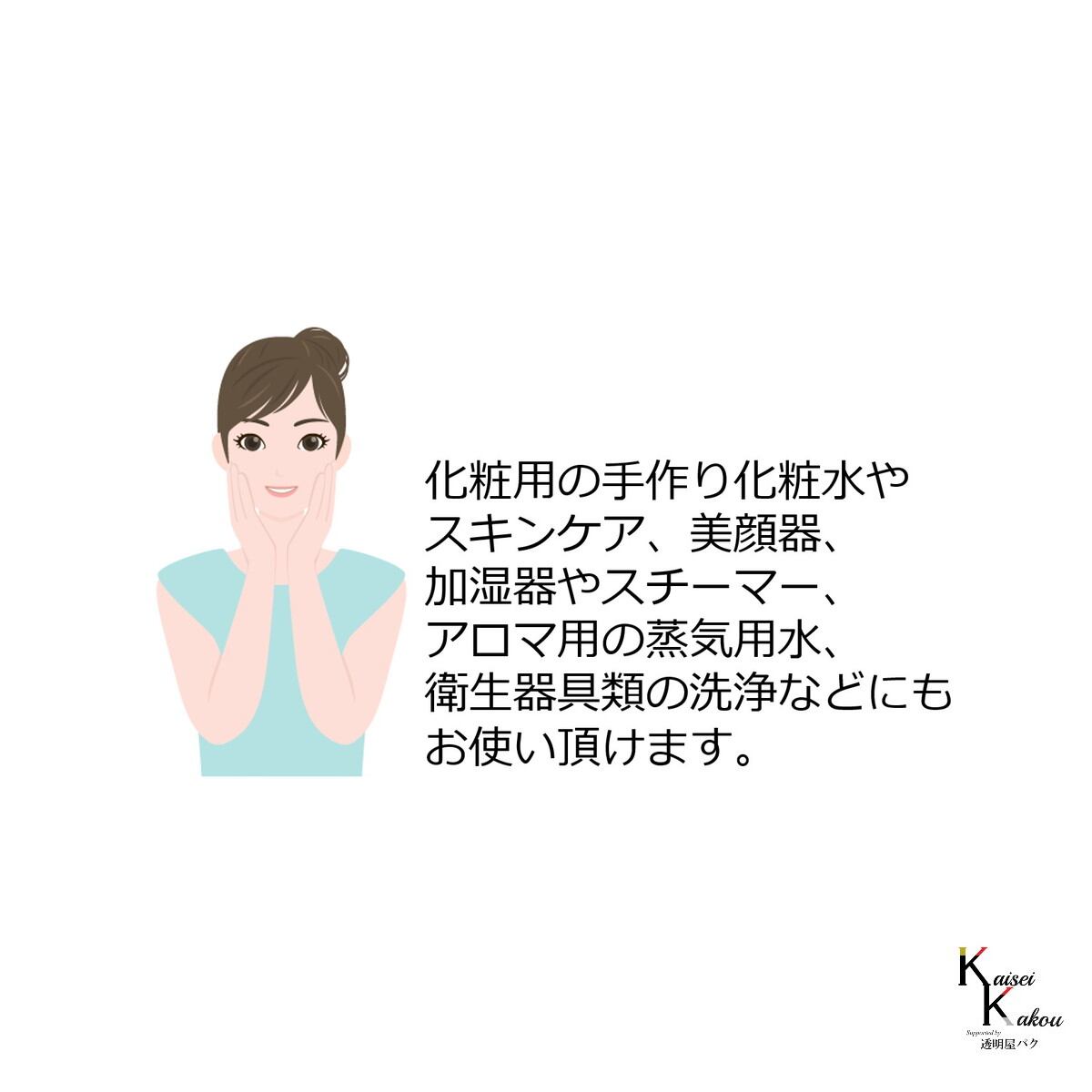 美顔器や加湿器などの蒸気用水に最適。アロマ用にも。