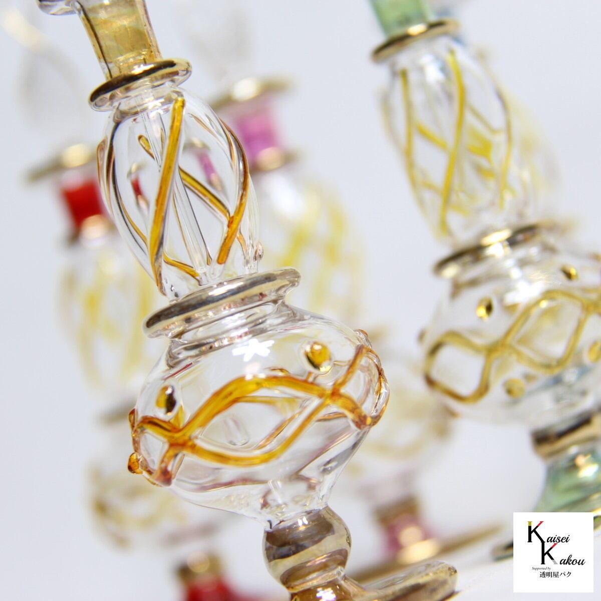 カラーは豊富にそろえてます! 「エジプトガラス デコラ クロス模様 グリーン」 香水瓶 ファンシー エジプシャングラス ビン びん ミニガラス瓶 クレオパトラ パフュームボトル 香水ボトル ハーバリウム プレゼント アトマイザー ハンドメイド インテリア アロマ 切子 プレゼント カラーは豊富にそろえてます! 一つひとつ吹き、作り上げた香水瓶(パフュームボトル)です。 【カラー】 グリーン 他に ブルー系 ピンク系 レッド系 ライトブルー・パープル系 イエロー のご用意もあります。 ※色味は個々により微妙に異なります。 お好みのハーバリウムお作りください。 ほかにも、好みの香水をいれるとゆっくりと揮発して、香りを楽しむこともできます。 一輪挿しにすることもできますし、用途はさまざまです。 商品詳細 伝統的な吹きガラスの製法で作っております。 フタには密閉性はございませんので、内容液をいれたまま傾けることがないようにお願いします。接着してお使いください。 ハンドメイド品につき、細かな装飾(金メッキや波模様を含む)や形、大きさ、色味が異なります。また、小傷や汚れ等ある場合もございます。 製品はとてもデリケートなため、接触、圧力、温度変化により、塗装やメッキがダメージを受けることがございます。お取り扱いには十分にご注意ください。 全く同じもののお届けはできませんので、あらかじめご了承ください。 【全体サイズ】 高さ約12cm±2cm また、本製品はハンドメイド品のため、世界に同じものはひとつとて、ありません。 【素材】本体:ガラス 5