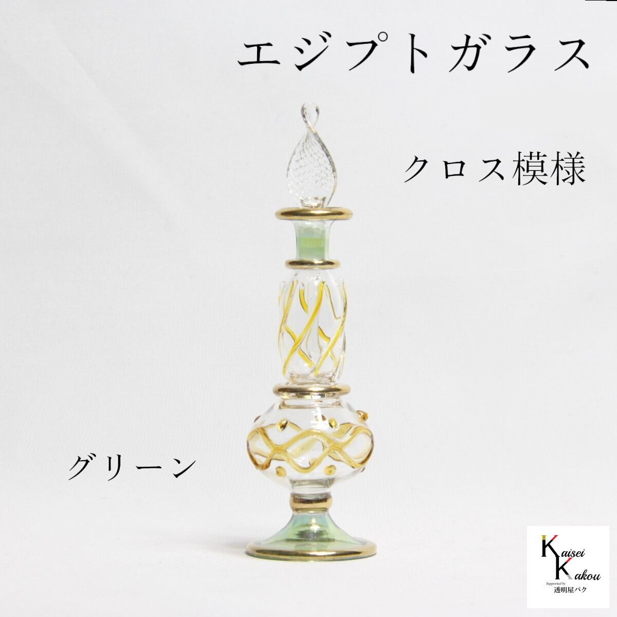 「エジプトガラス クロス模様 グリーン」 香水瓶 ファンシー エジプシャングラス ビン びん ミニガラス瓶 クレオパトラ パフュームボトル 香水ボトル ハーバリウム プレゼント アトマイザー ハンドメイド インテリア アロマ 切子 プレゼント