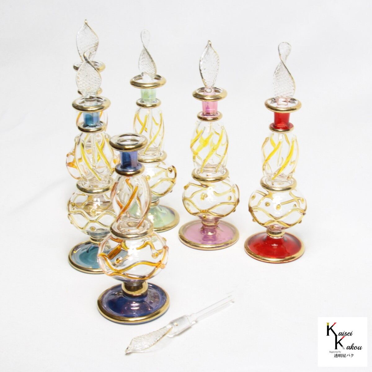 カラーは豊富にそろえてます! 「エジプトガラス デコラ クロス模様 イエロー」 香水瓶 ファンシー エジプシャングラス ビン びん ミニガラス瓶 クレオパトラ パフュームボトル 香水ボトル ハーバリウム プレゼント アトマイザー ハンドメイド インテリア アロマ 切子 プレゼント カラーは豊富にそろえてます! 一つひとつ吹き、作り上げた香水瓶(パフュームボトル)です。 【カラー】 イエロー 他に ブルー系 ピンク系 グリーン レッド系 ライトブルー・パープル系 のご用意もあります。 ※色味は個々により微妙に異なります。 お好みのハーバリウムお作りください。 ほかにも、好みの香水をいれるとゆっくりと揮発して、香りを楽しむこともできます。 一輪挿しにすることもできますし、用途はさまざまです。 商品詳細 伝統的な吹きガラスの製法で作っております。 フタには密閉性はございませんので、内容液をいれたまま傾けることがないようにお願いします。接着してお使いください。 ハンドメイド品につき、細かな装飾(金メッキや波模様を含む)や形、大きさ、色味が異なります。また、小傷や汚れ等ある場合もございます。 製品はとてもデリケートなため、接触、圧力、温度変化により、塗装やメッキがダメージを受けることがございます。お取り扱いには十分にご注意ください。 全く同じもののお届けはできませんので、あらかじめご了承ください。 【全体サイズ】 高さ約12cm±2cm また、本製品はハンドメイド品のため、世界に同じものはひとつとて、ありません。 【素材】本体:ガラス 5