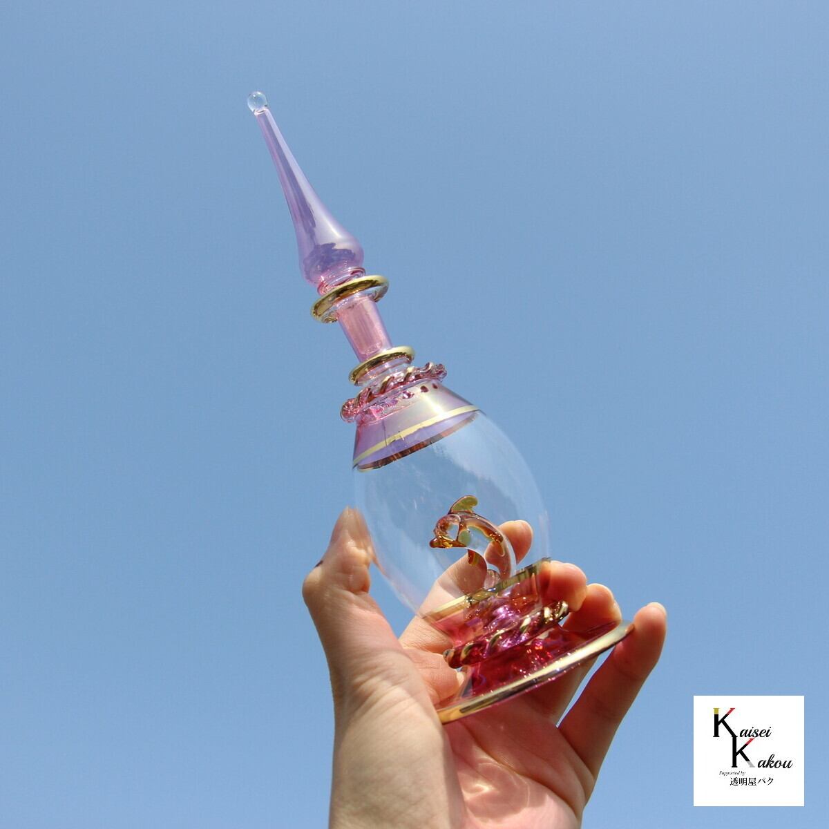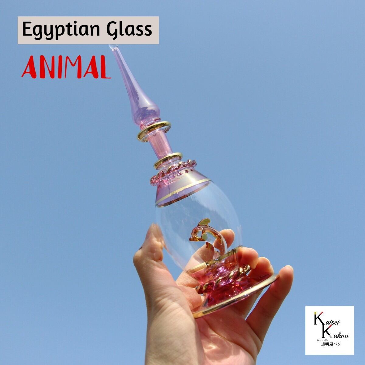 『エジプトボトル アニマル ピンクパープル系 イルカ』エジプシャンボトル 香水ボトル 香水瓶 ガラス細工