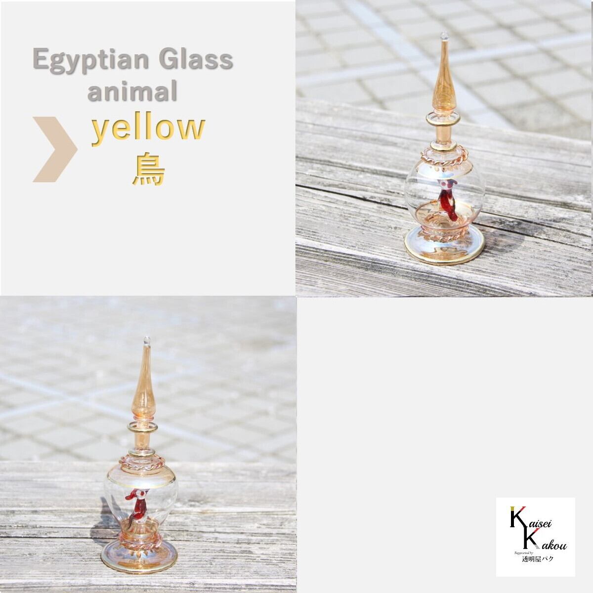 『エジプトボトル アニマル イエロー 鳥』エジプシャンボトル 香水ボトル 香水瓶 ガラス細工