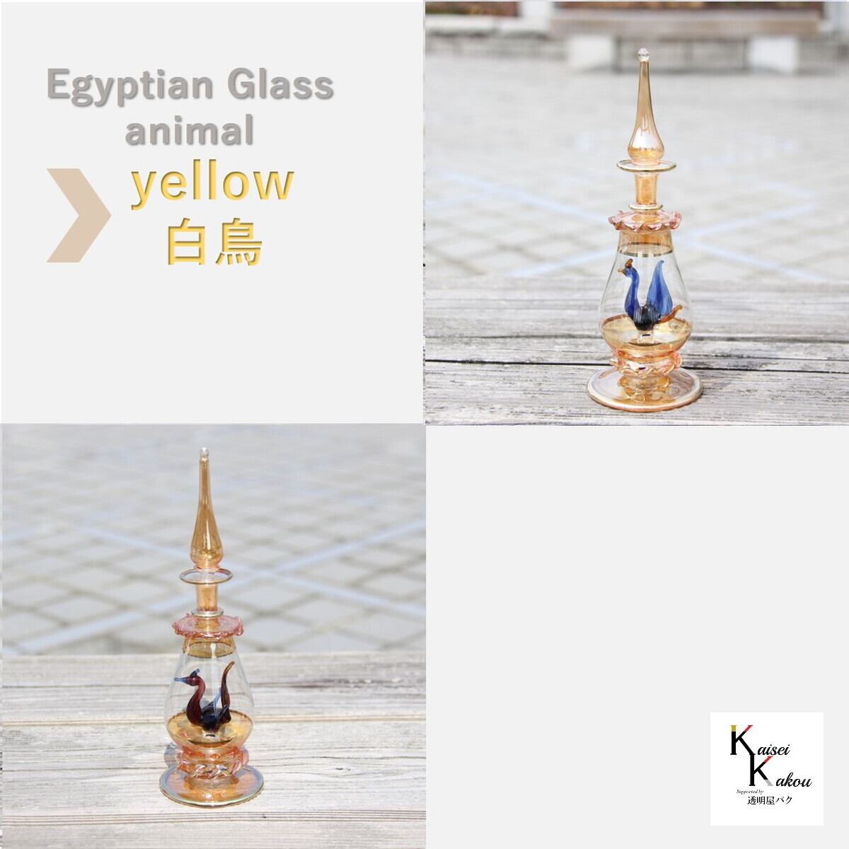 『エジプトボトル アニマル イエロー 白鳥』エジプシャンボトル 香水ボトル 香水瓶 ガラス細工